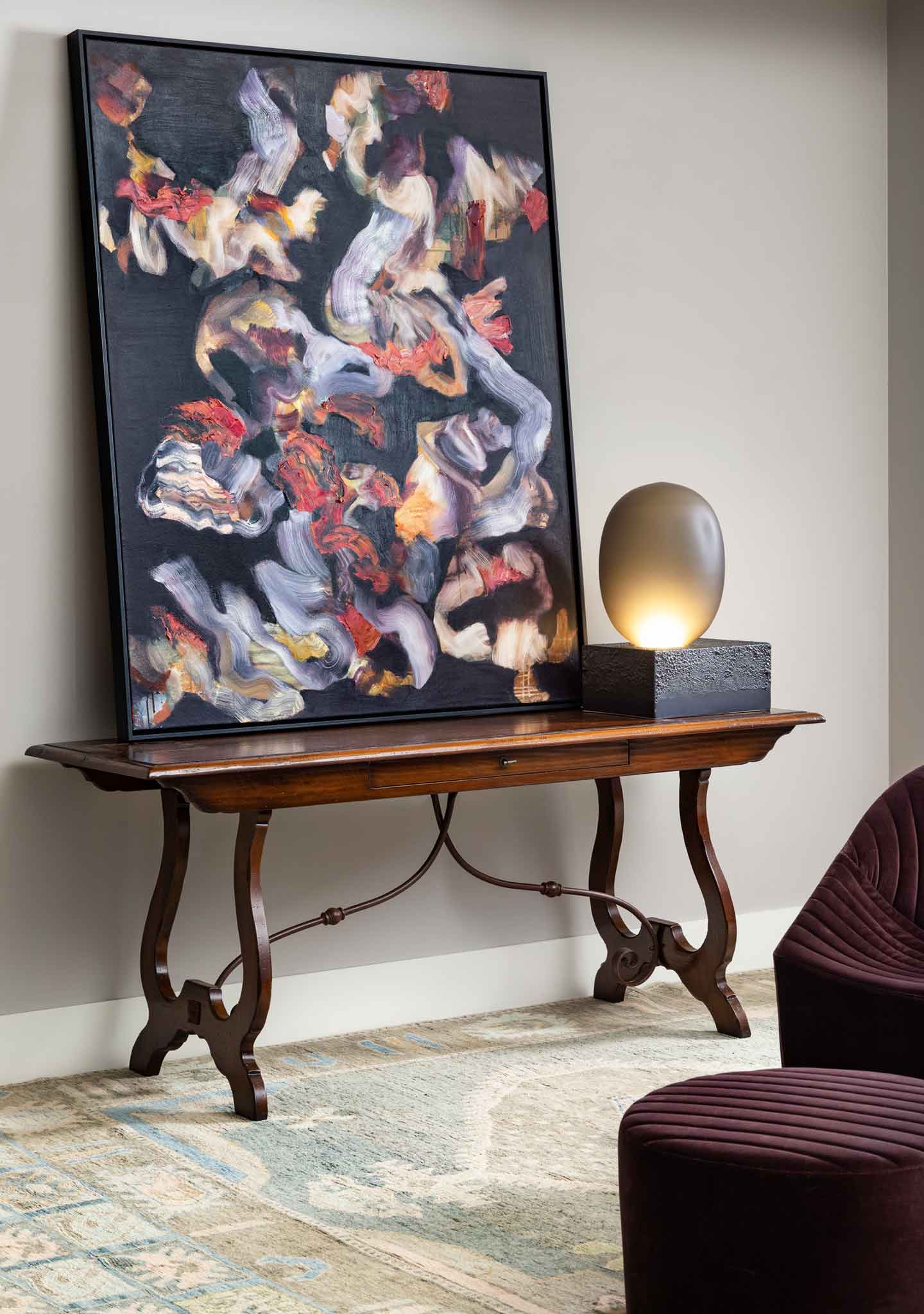 The Agata Console Table by Giordanna Marchetti for Arte Brotto has a streamlined traditional look with handy drawer.