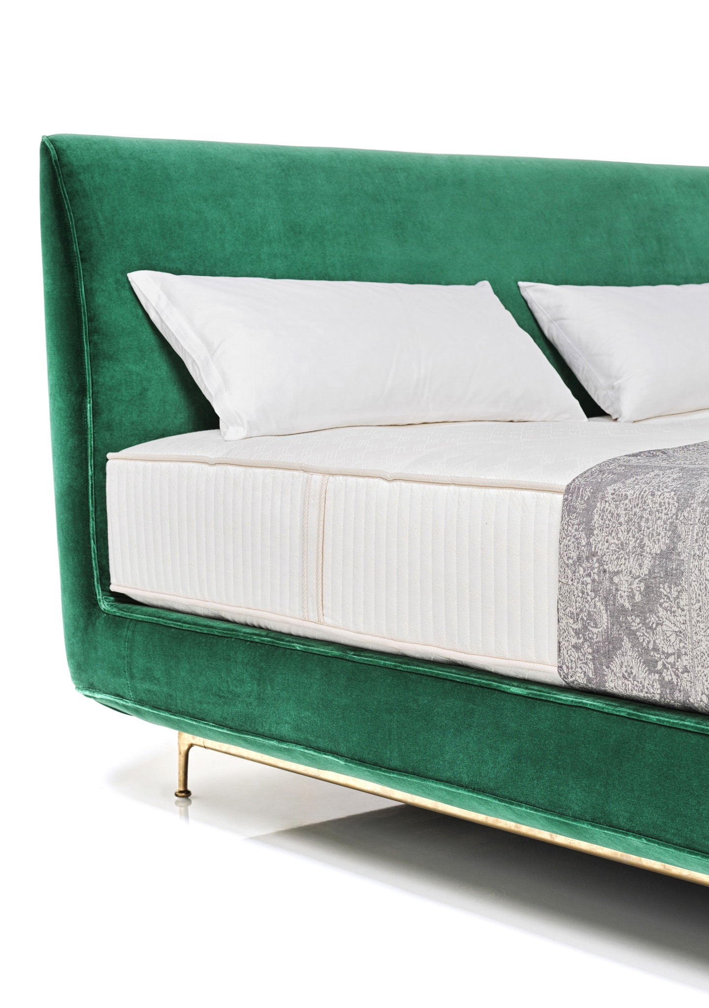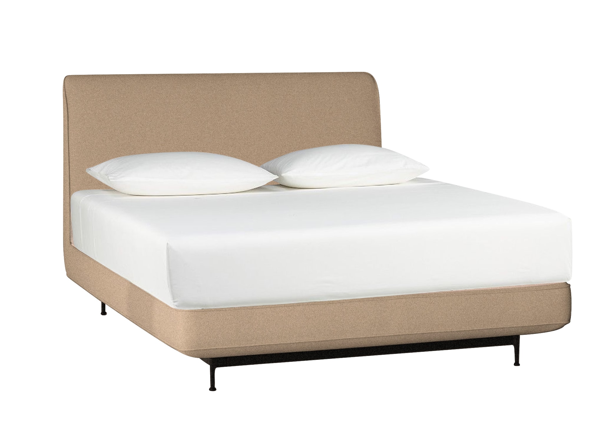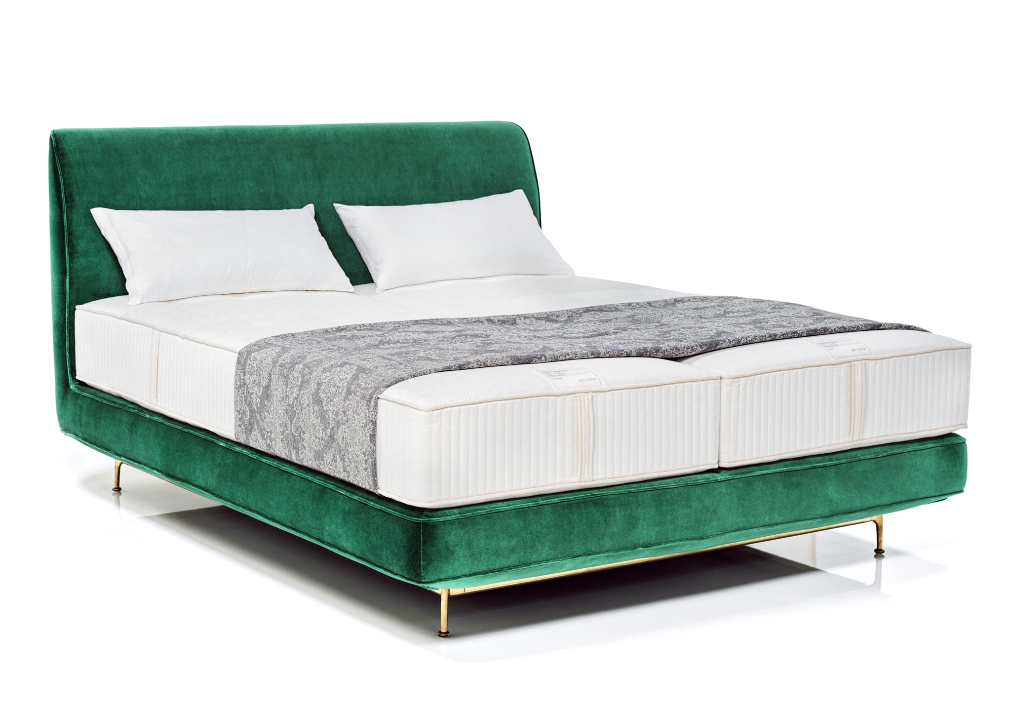 Base: wood construction, pocket spring, polyfoam, fleece covered. Insert substrate is boxspring. Standard feet black-grey powder coated. On request brass-satin matte.