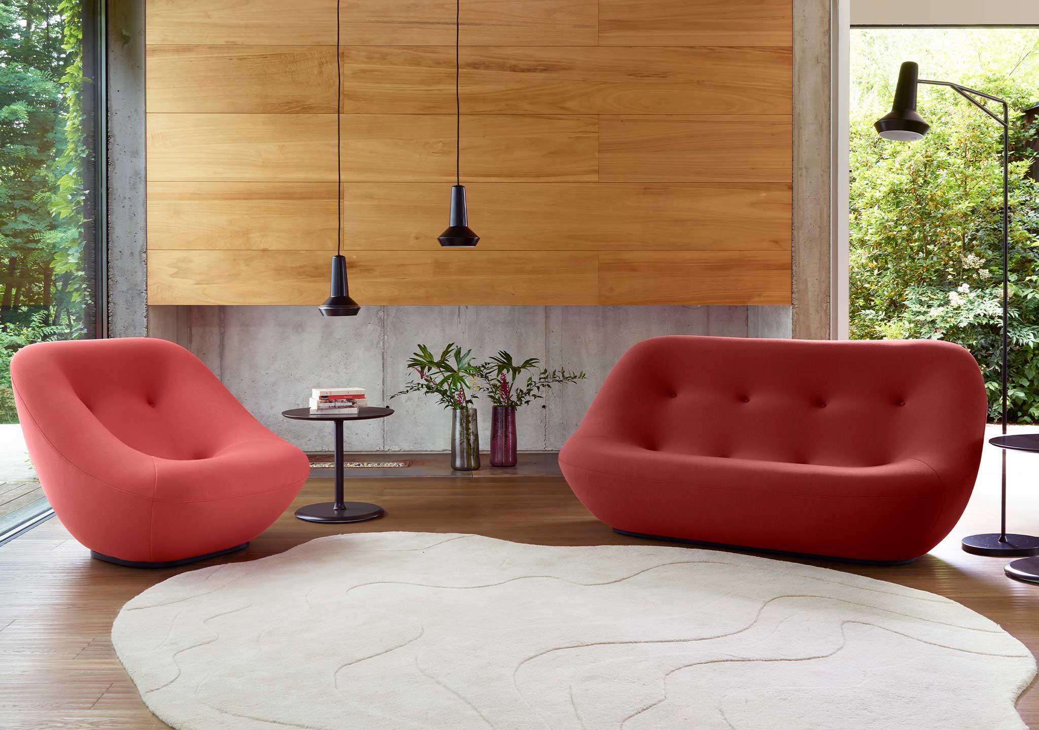 The seat and integral armrests of the Bonnie Swivelling Armchair are made of high resilience polyurethane Bultex foam, with a comfort layer of ultra-flexible polyurethane foam. The integral backrest is in Bultex, with comfort layer of ultra-flexible polyurethane foam. Handcrafted in France by Ligne Roset.