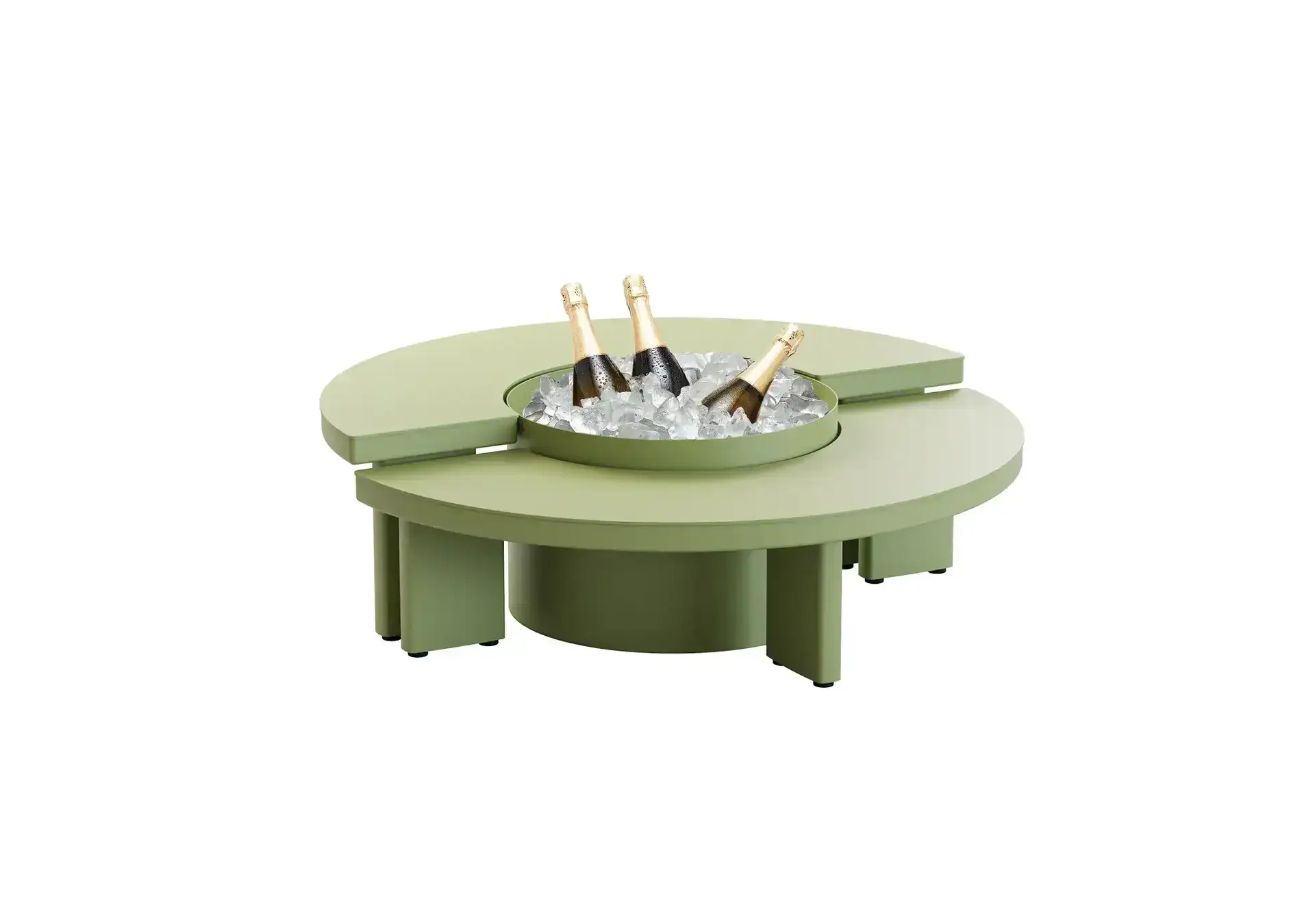 Elevate your outdoor or alfresco lounging experience with the multifunctional KUN Design Clogs Coffee Table with Ice Bucket by Kun Qi. It’s the perfect fusion of style, functionality, and innovation. Inspired by the organic curves of traditional wooden clogs, this contemporary coffee table brings a sculptural elegance to any space.