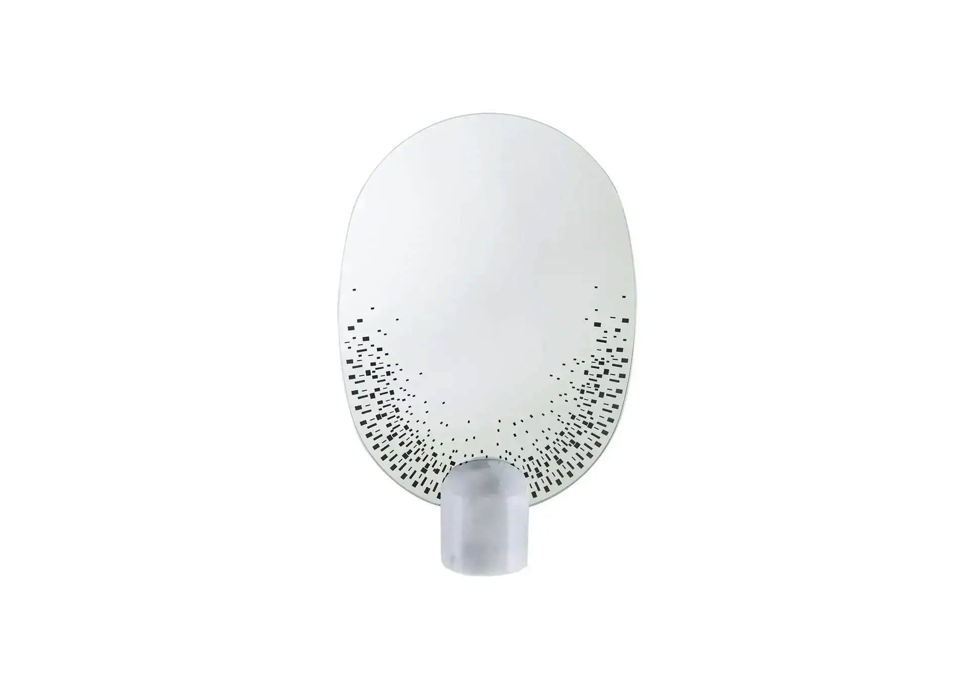 Inspired by playful confetti sprinkles, the 5mm-thick mirror glass is adorned with laser-engraved patterns, adding a touch of design flair. The light grey lacquered back lends a subtle retro aesthetic, making this mirror as stylish as it is functional.