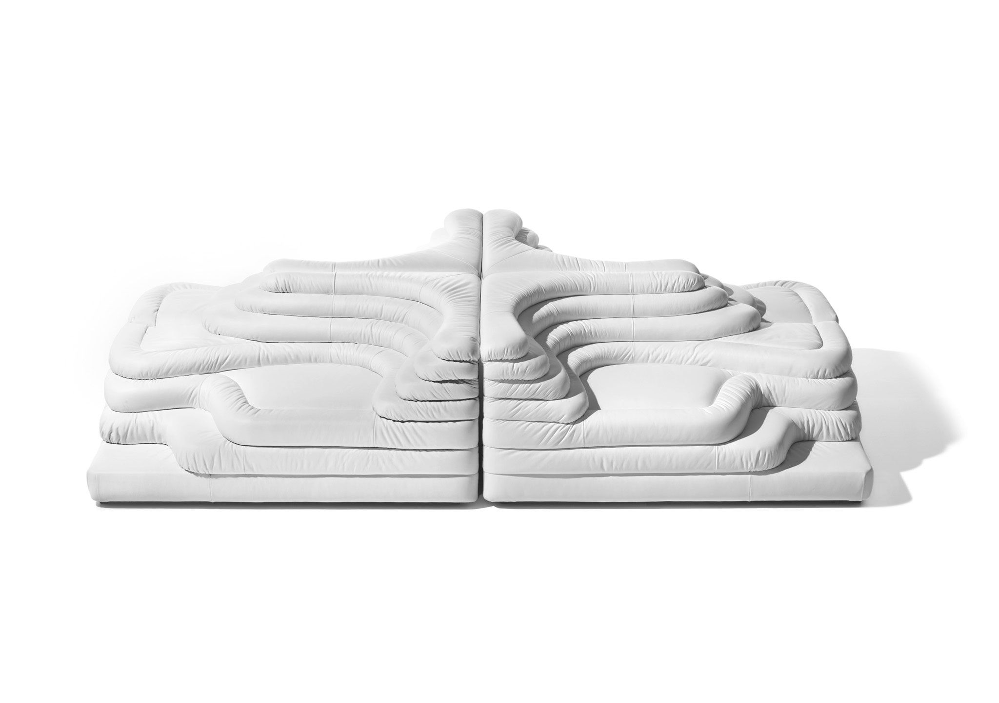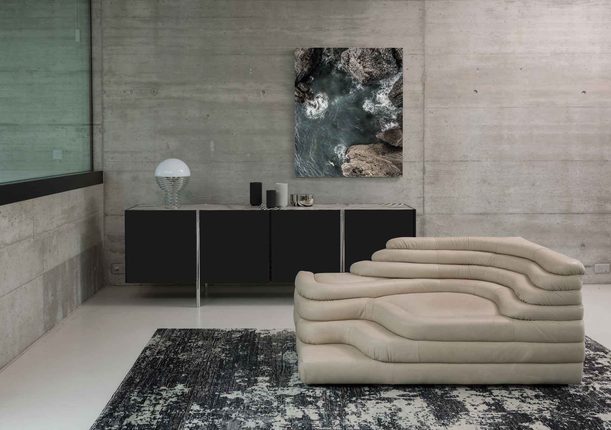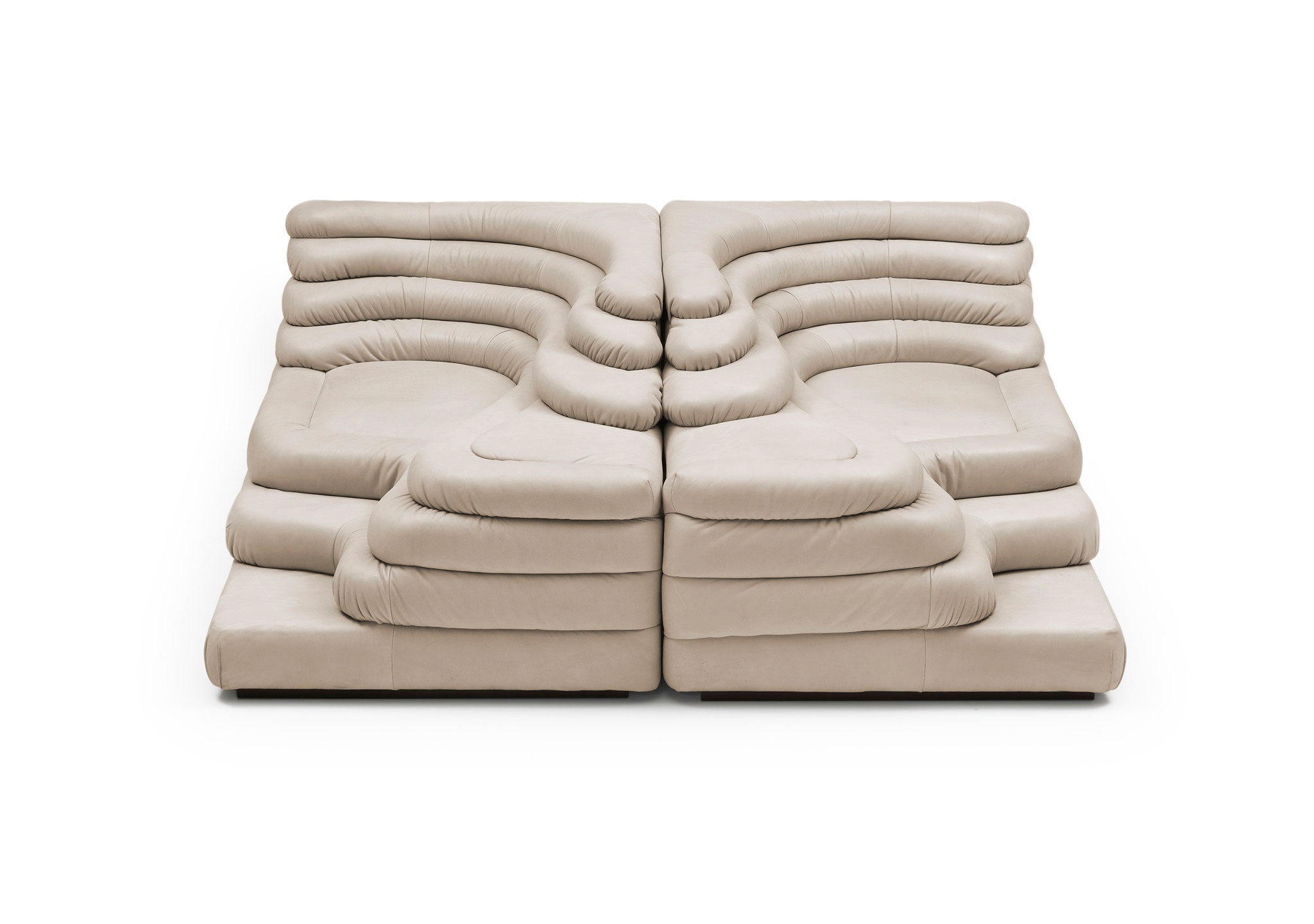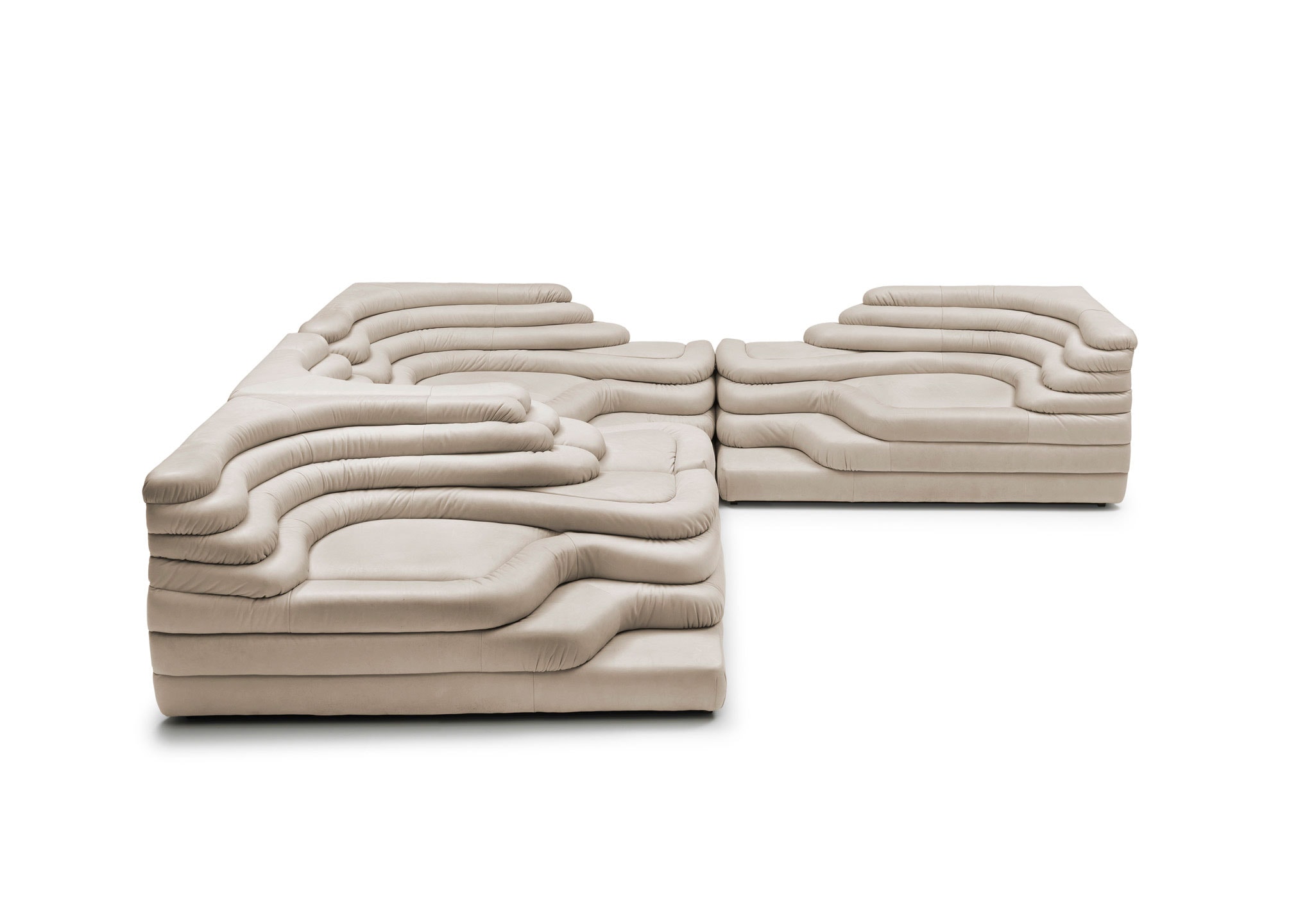 The DS-1025 Sofa Terrazza by Ubuld Klug for de Sede is like a terraced landscape or molten form. It has curving and tapering layers inspired by piles of sand; and like sand, it can be used to create different forms.