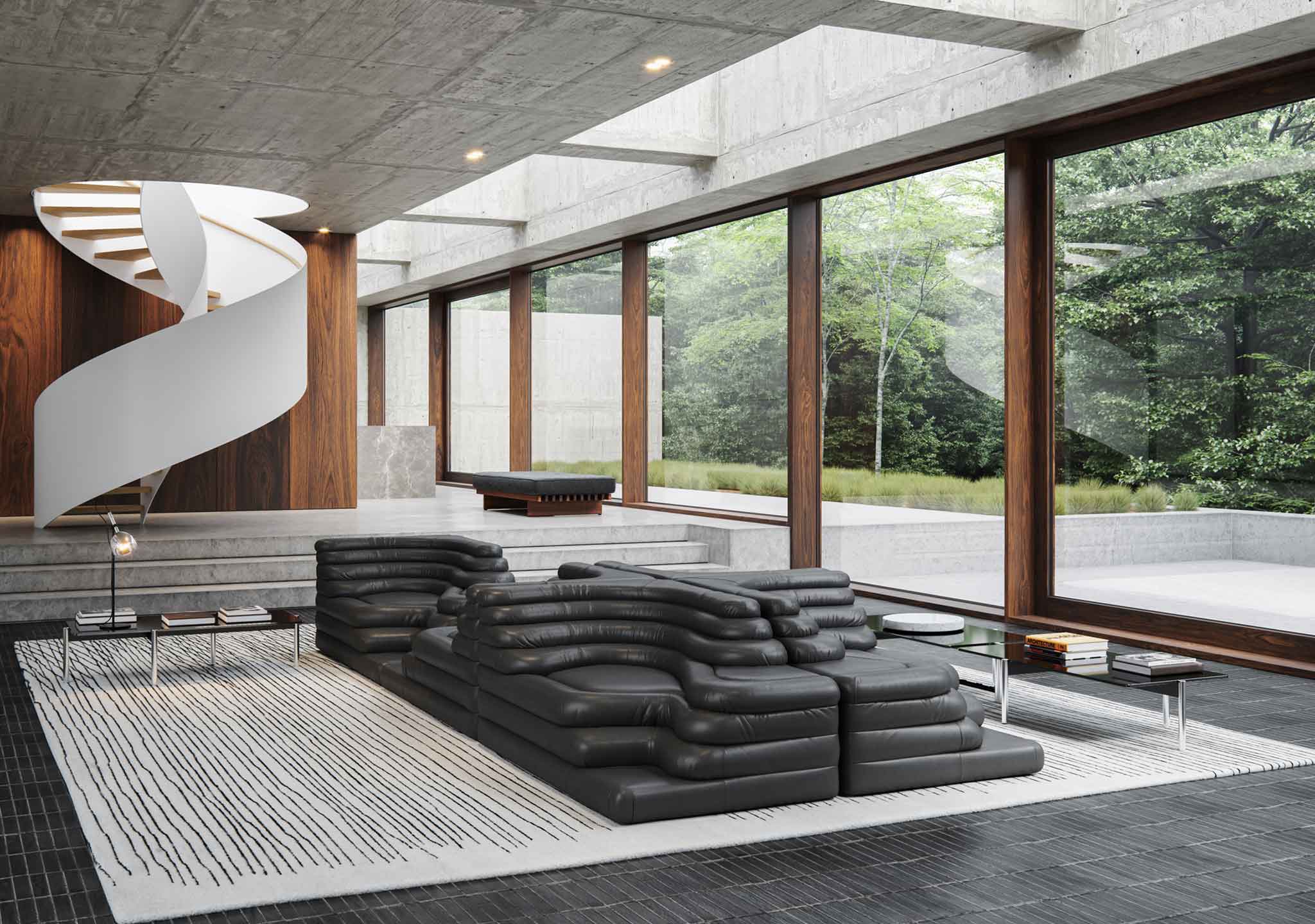 Designed in 1974 by Ubald Klug for Swiss leather masters, de Sede, the DS-1025 Sofa was a landmark design for the Pop Art generation. In particular, Mick Jagger’s enthusiasm for the tiered Terrazza sofa demonstrates how Ubald Klug’s design ideas had struck the nerve of the day. And still do so now.