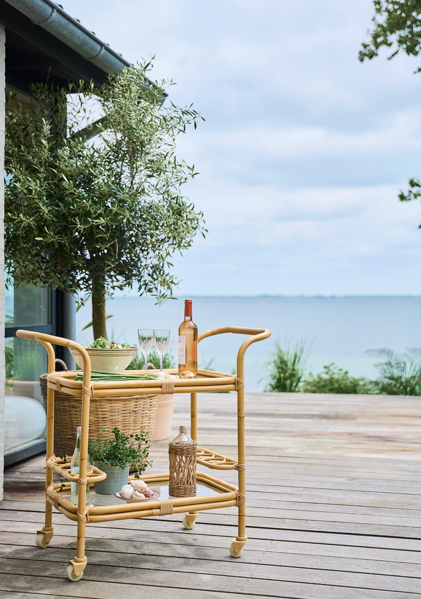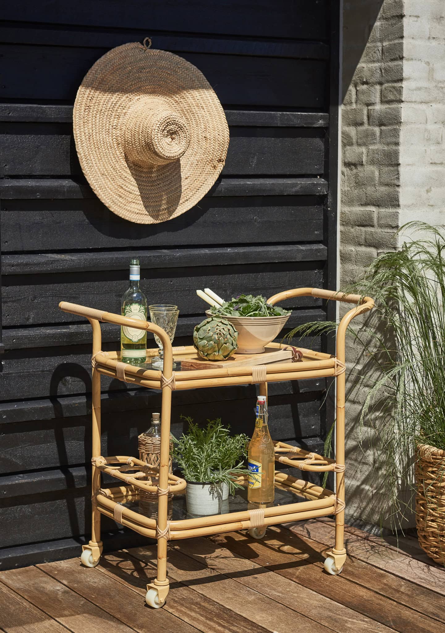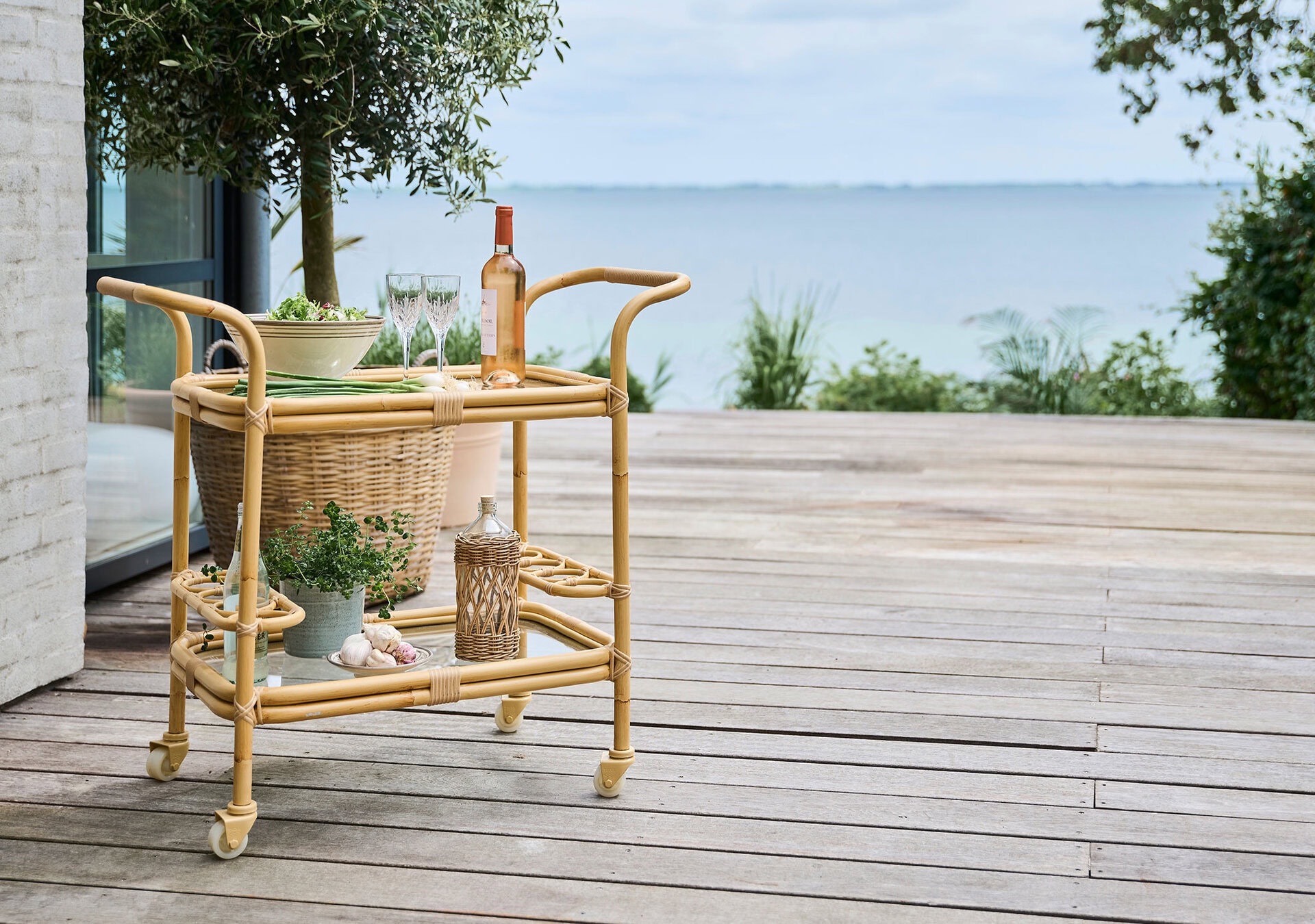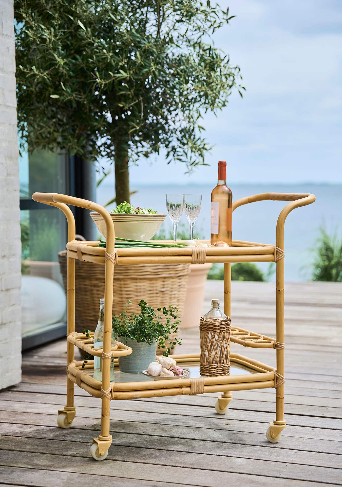 Keep drinks and antipasto within reach with the Exterior Carlo Bar Trolley. Featuring six bottle compartments and two shelves of glass, use the drinks trolley to serve elegant drinks or as a handy extra side table for alfresco or garden dining.