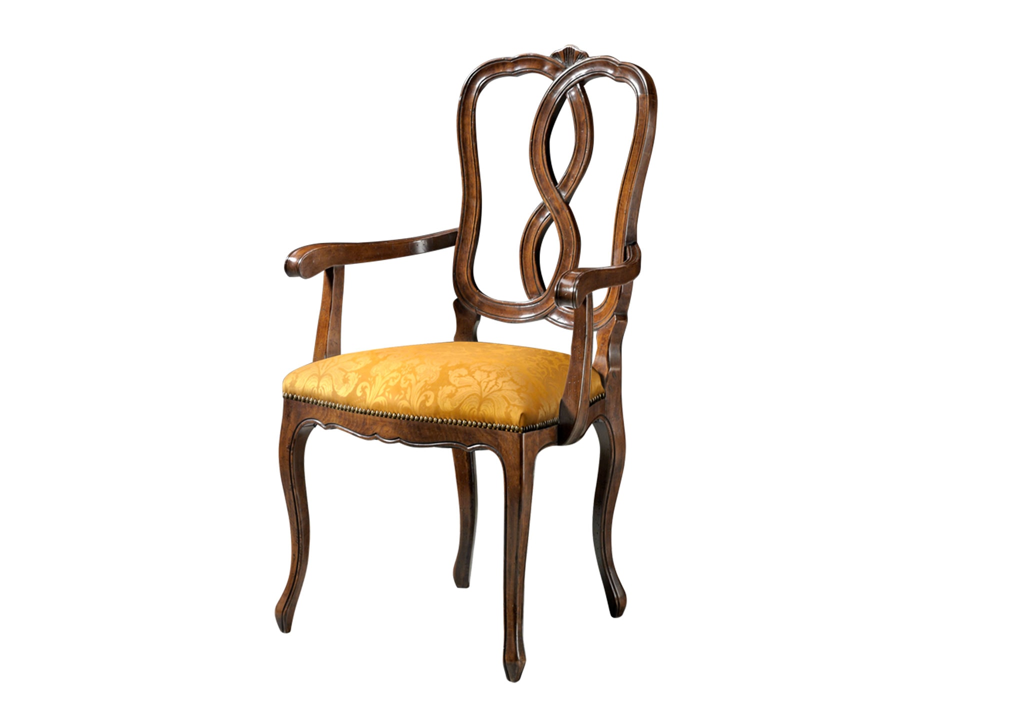 The classic Giovanni Visentin Figure 8 Dining Armchair references the mid XVIII century Venetian style. During this époque, a ‘figure 8’ style design motif commonly featured on the back of Venetian style chairs.