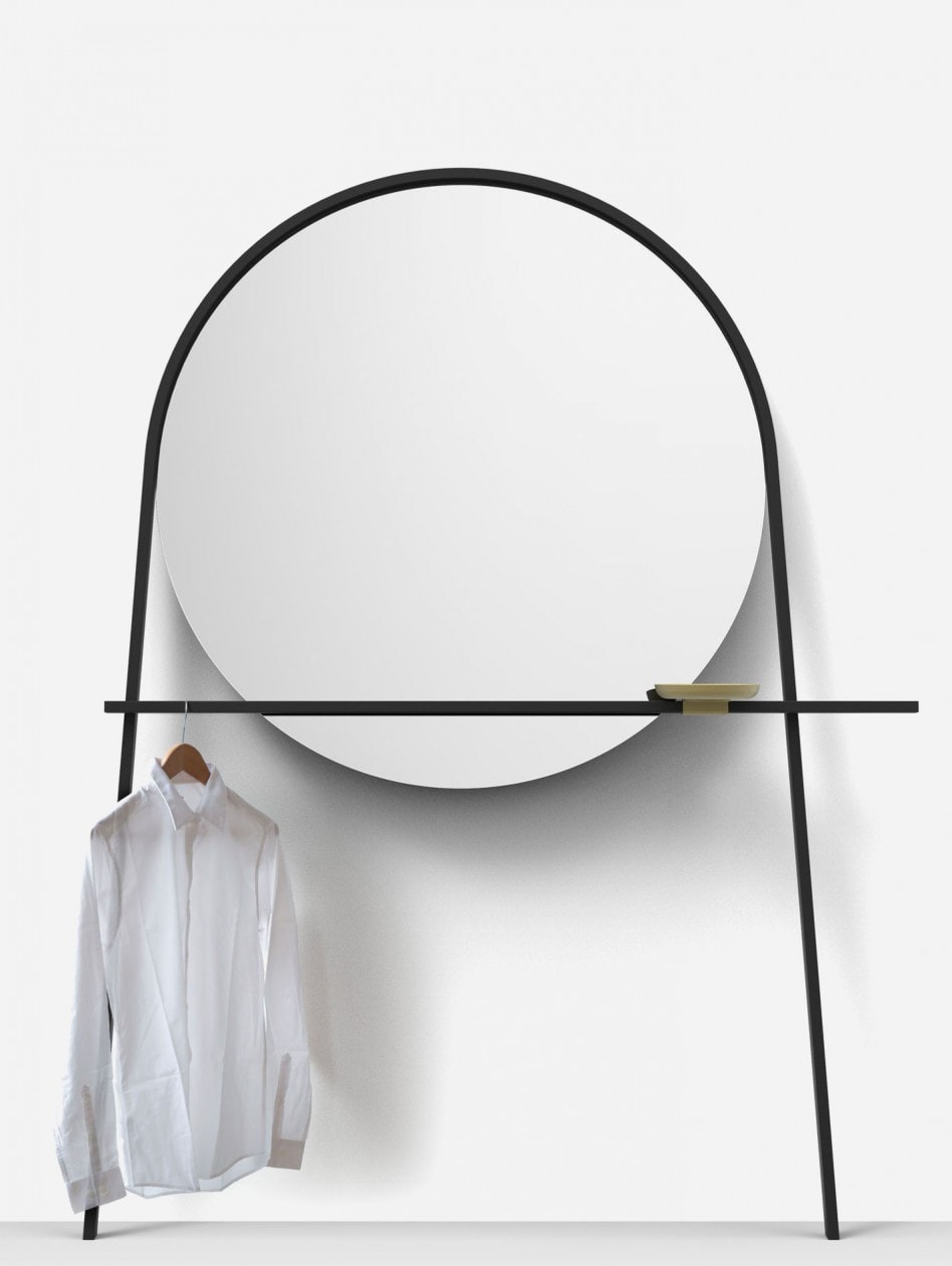 The perfect illustration of the concept of ‘simplexity’, the round Geoffrey Mirror by Alain Gilles is a ‘simple’ mirror and clothes stand but with a twist. With a mirror to check one’s reflection, a dish for one’s keys, a rail on which to hang a scarf or umbrella, it is a simple design to understand but much ‘richer’ than it would first seem.