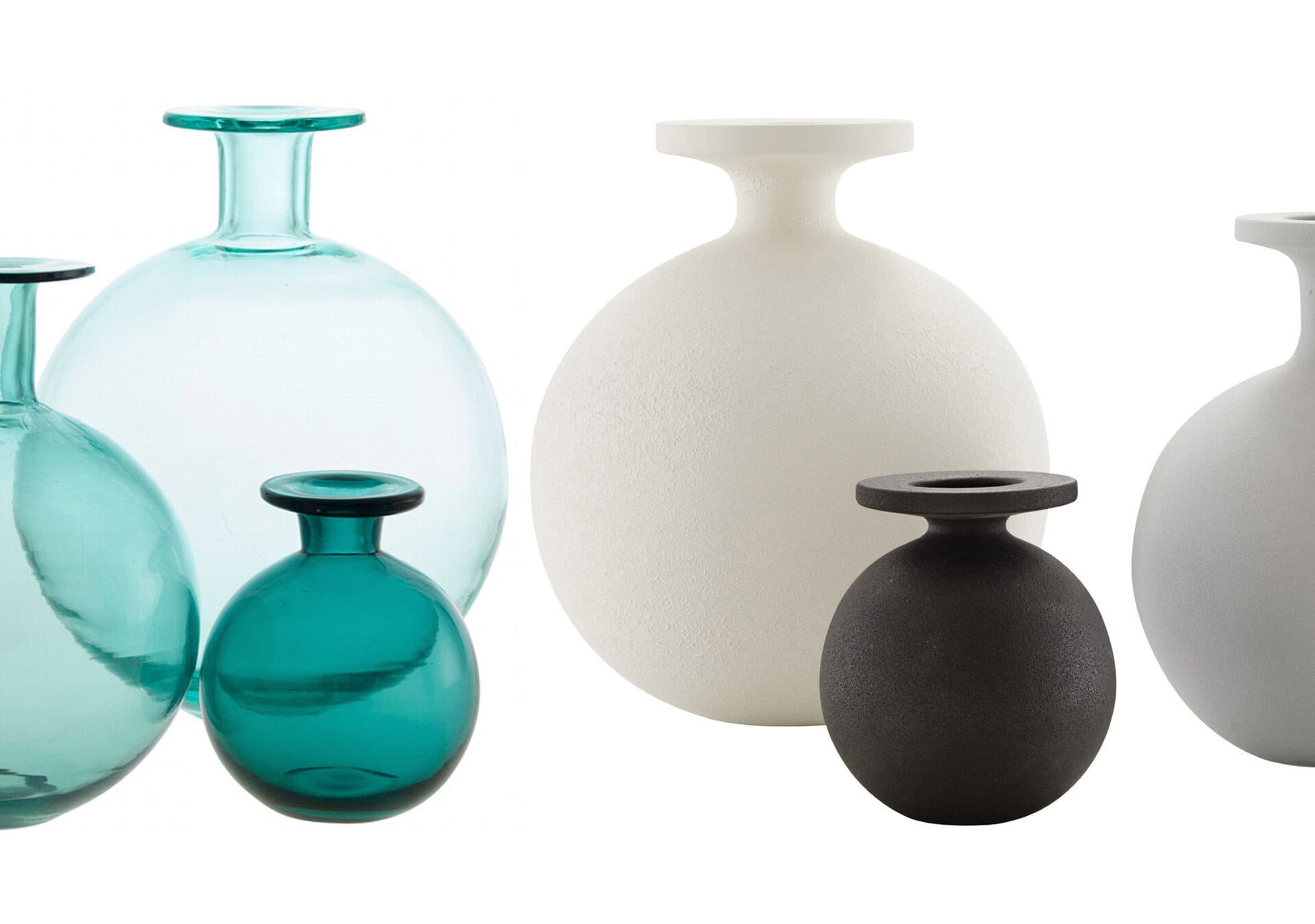 The curved Lundi Vase by Guillaume Bardet for Ligne Roset is a handmade vase with a deliberately unfinished-effect, created of enamelled earthenware.