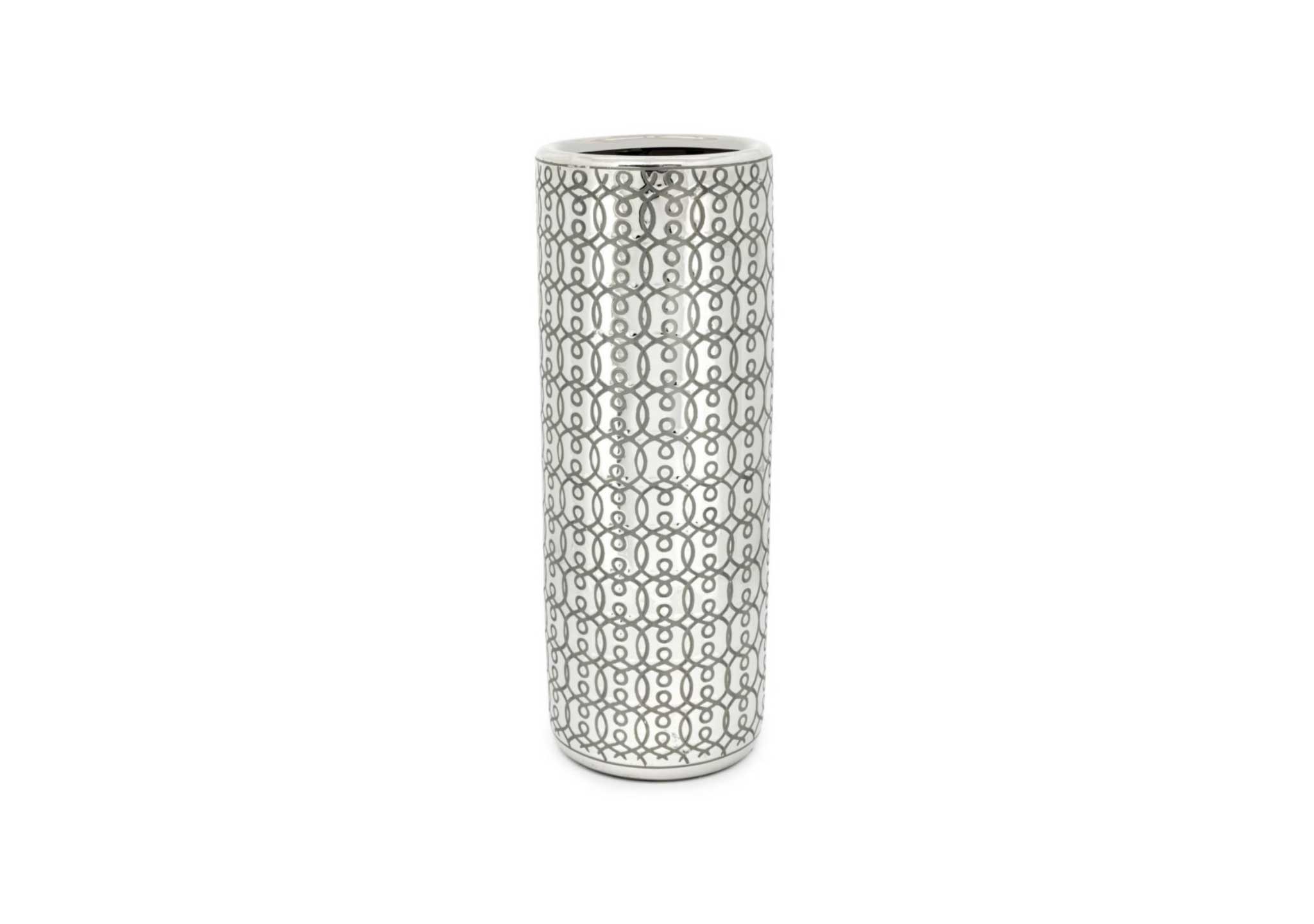 The extra-large Ming Deco Vase by Abhika is a handmade and hand decorated ceramic vase with a chrome effect finish.