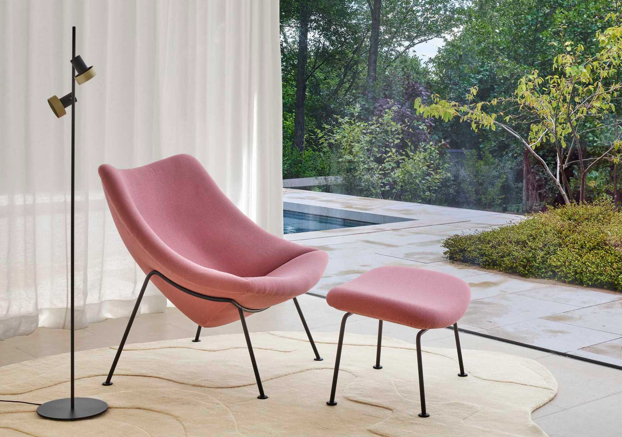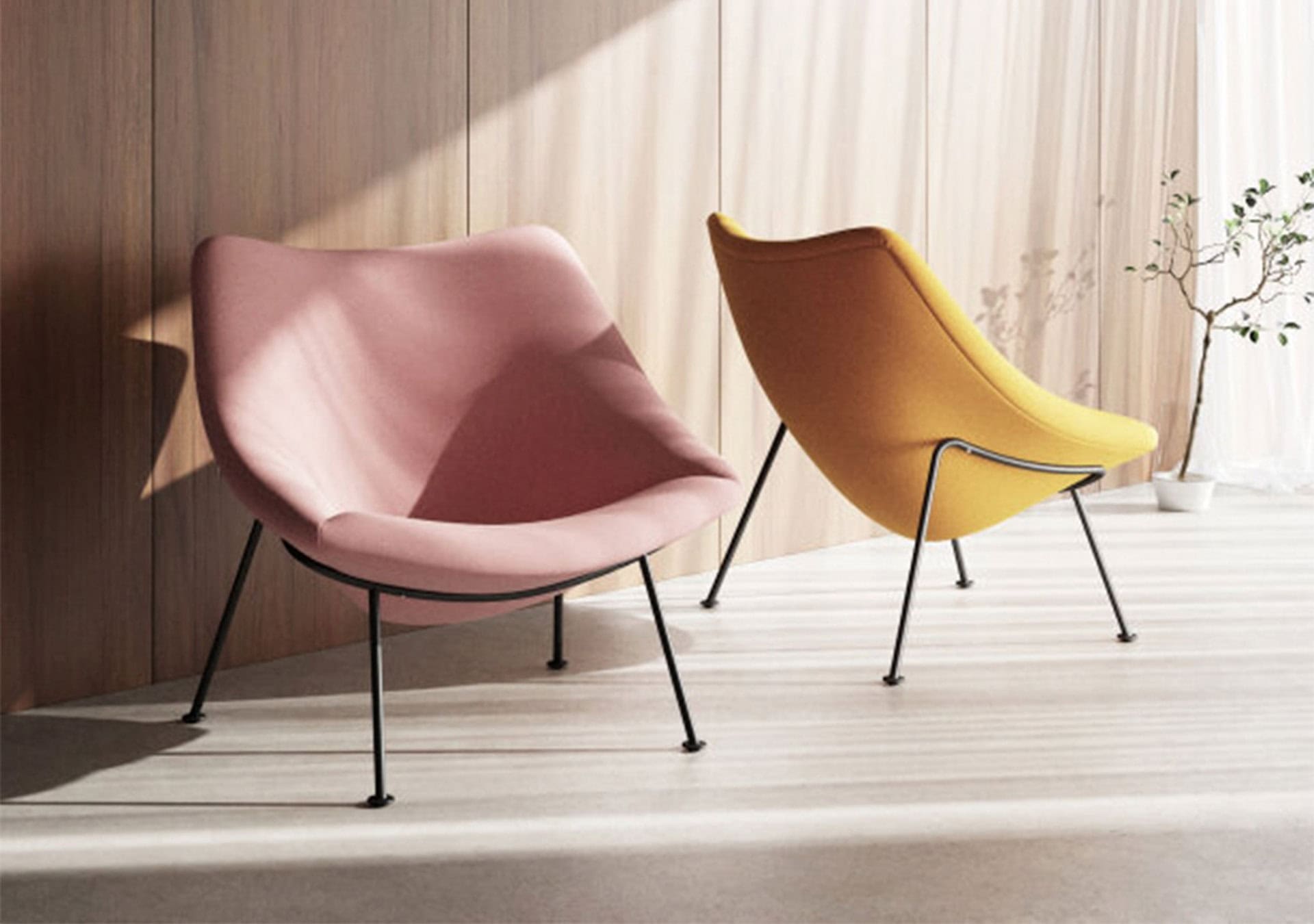 In 2023, Ligne Roset reissued the Oyster CM 137 Armchair from Pierre Paulin’s 1952 design. Its fluid lines and bold aesthetic ensure the Oyster is a timeless armchair design.