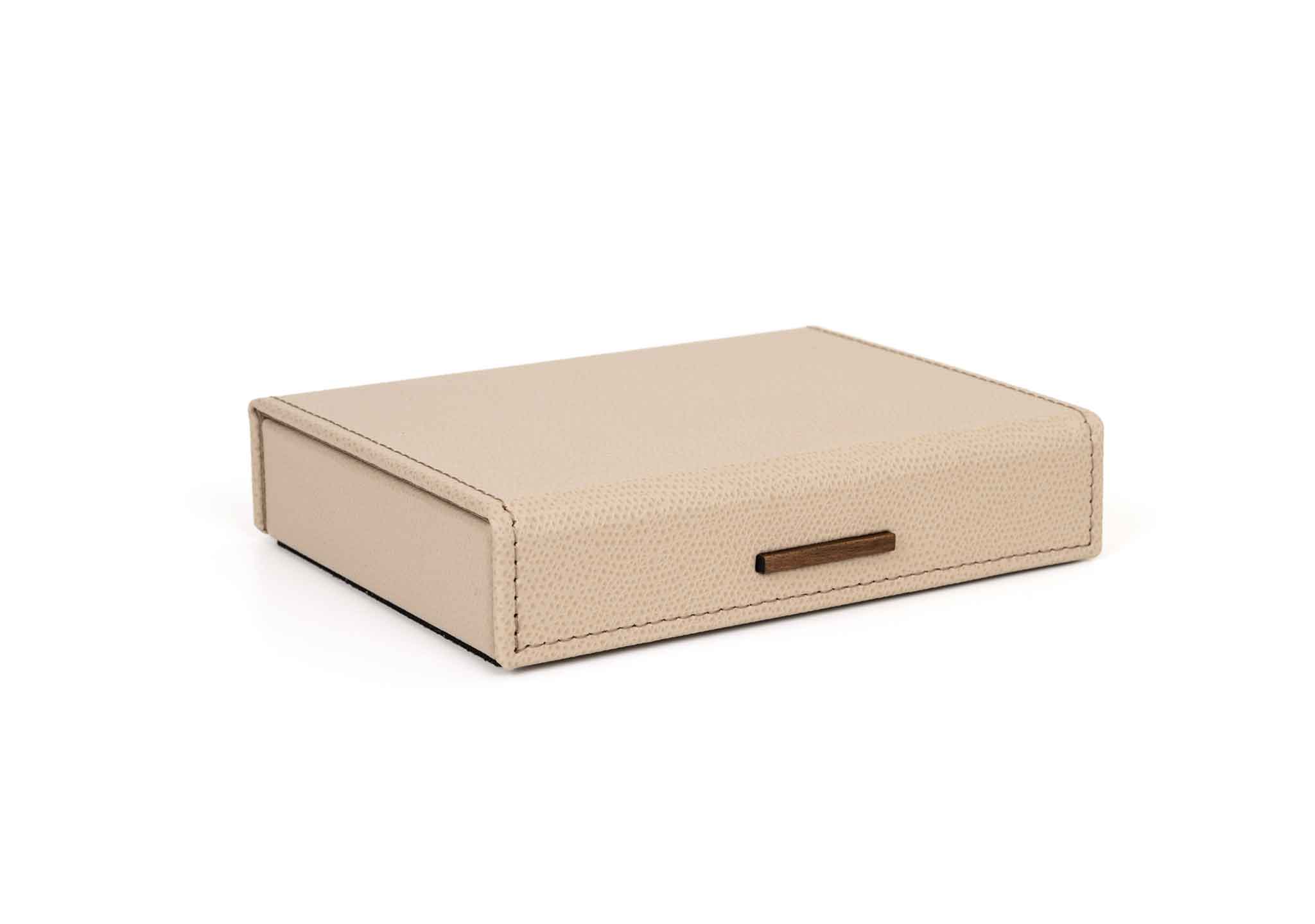 Crafted in Italy with hand stitched details, the playing card set is exquisitely made. The handmade wooden box is covered with luxurious grained leather. The interior of the storage box is fully lined in premium leather.