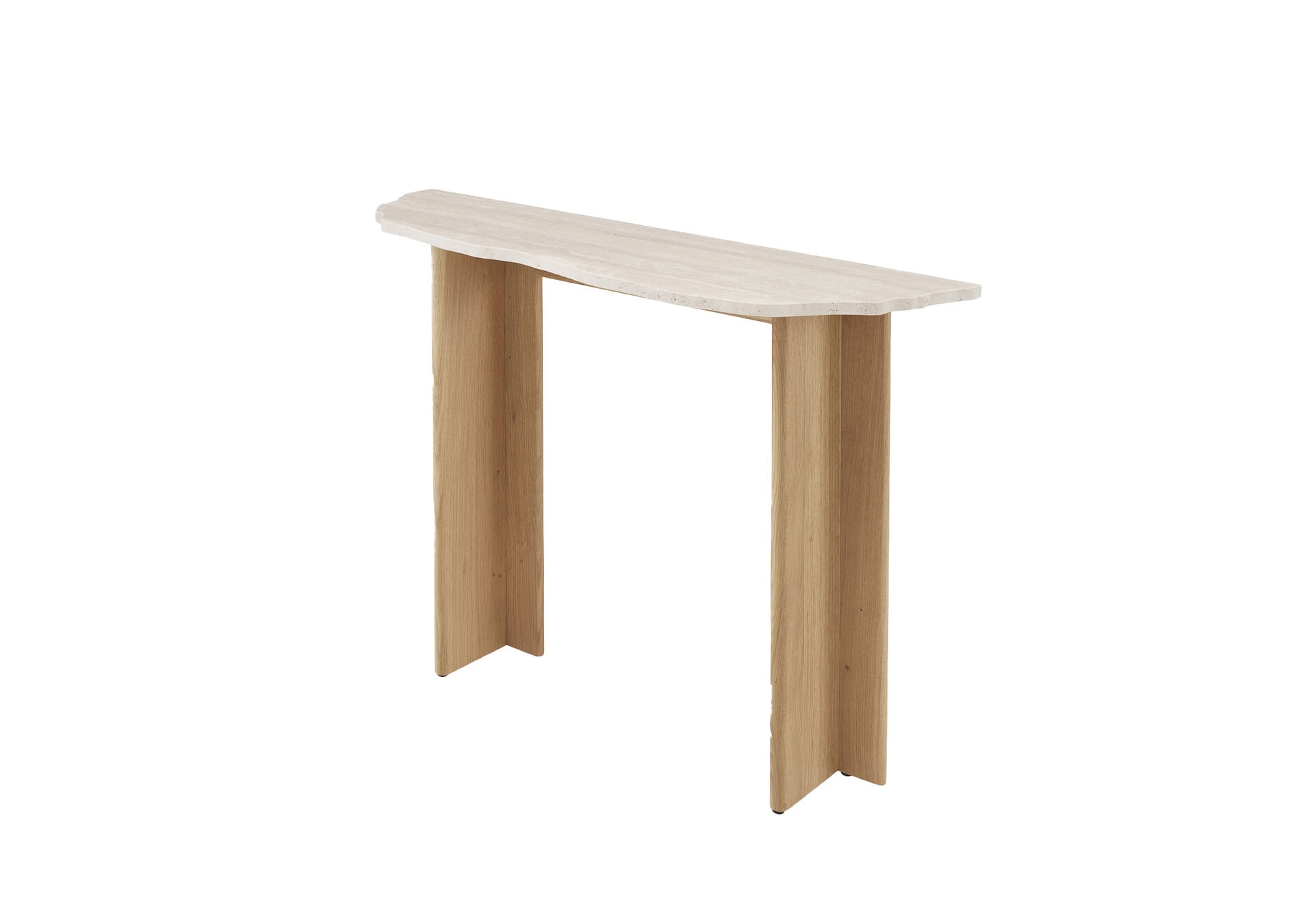 The Rhea Console Table by Ligne Roset is a study in sleek travertine and natural oak.