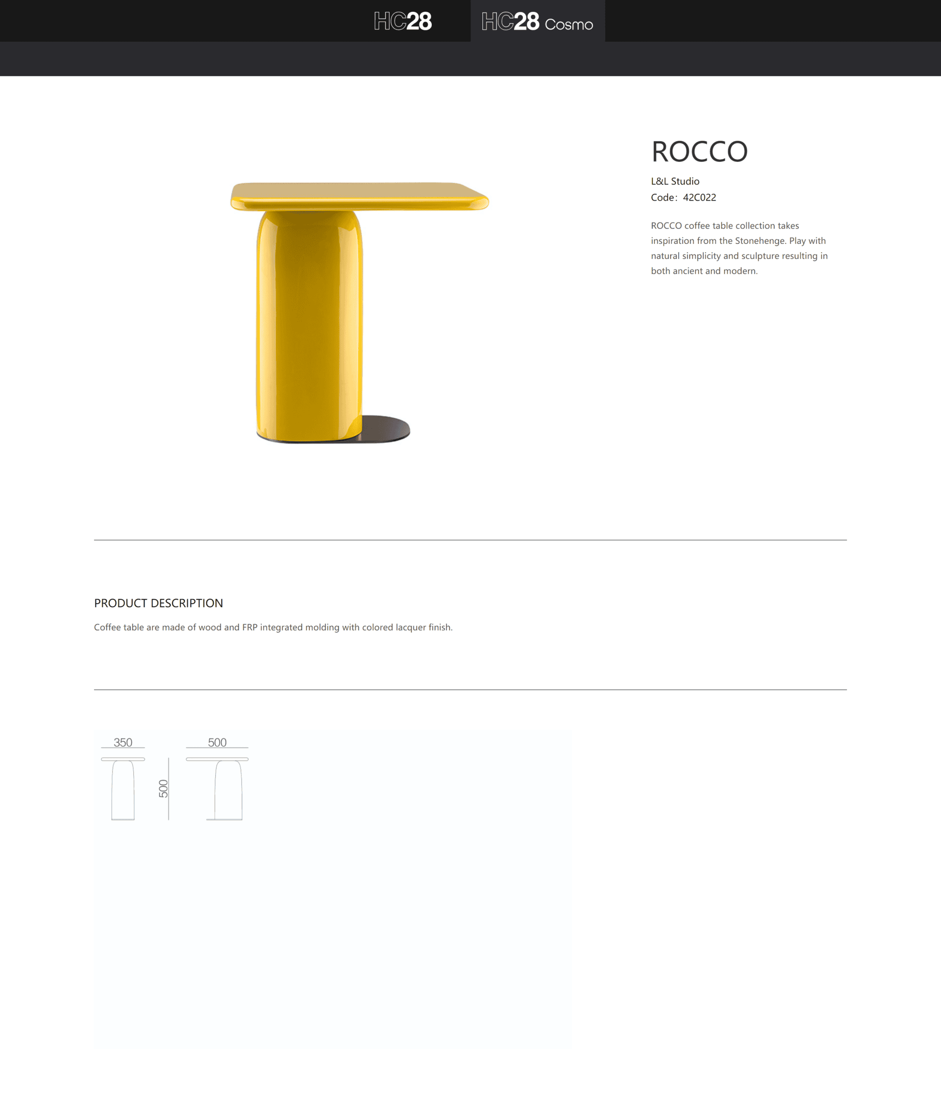 Crafted by HC28 Cosmo, the side table is made of wood and FRP integrated moulding and coated with coloured lacquer.