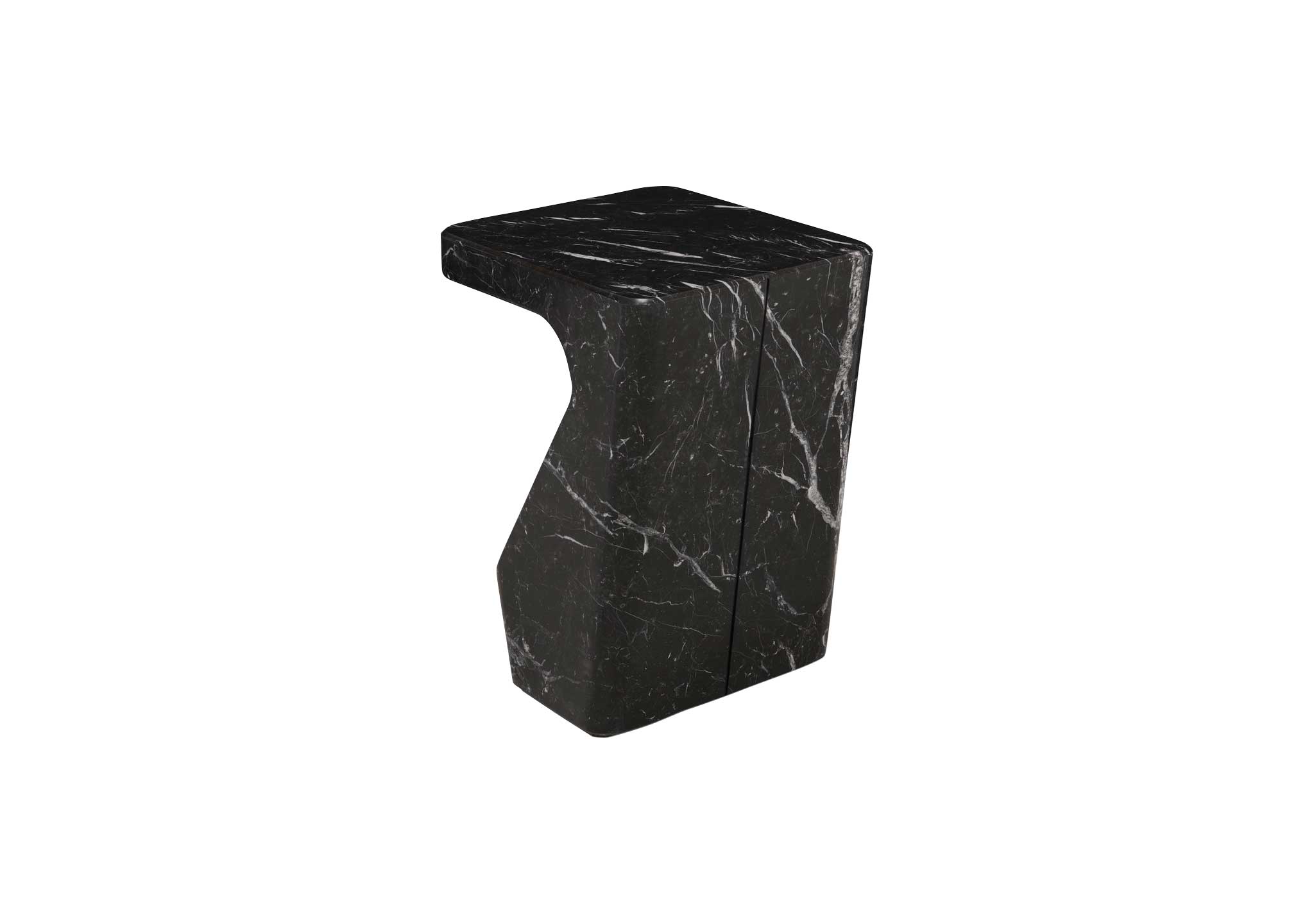 Its compact proportions allow it to sit effortlessly beside a sofa or lounge chair, while its weight and material integrity anchor the surrounding space. The absence of visible joins reinforces its monolithic quality, giving the table a sculptural presence that transcends function.