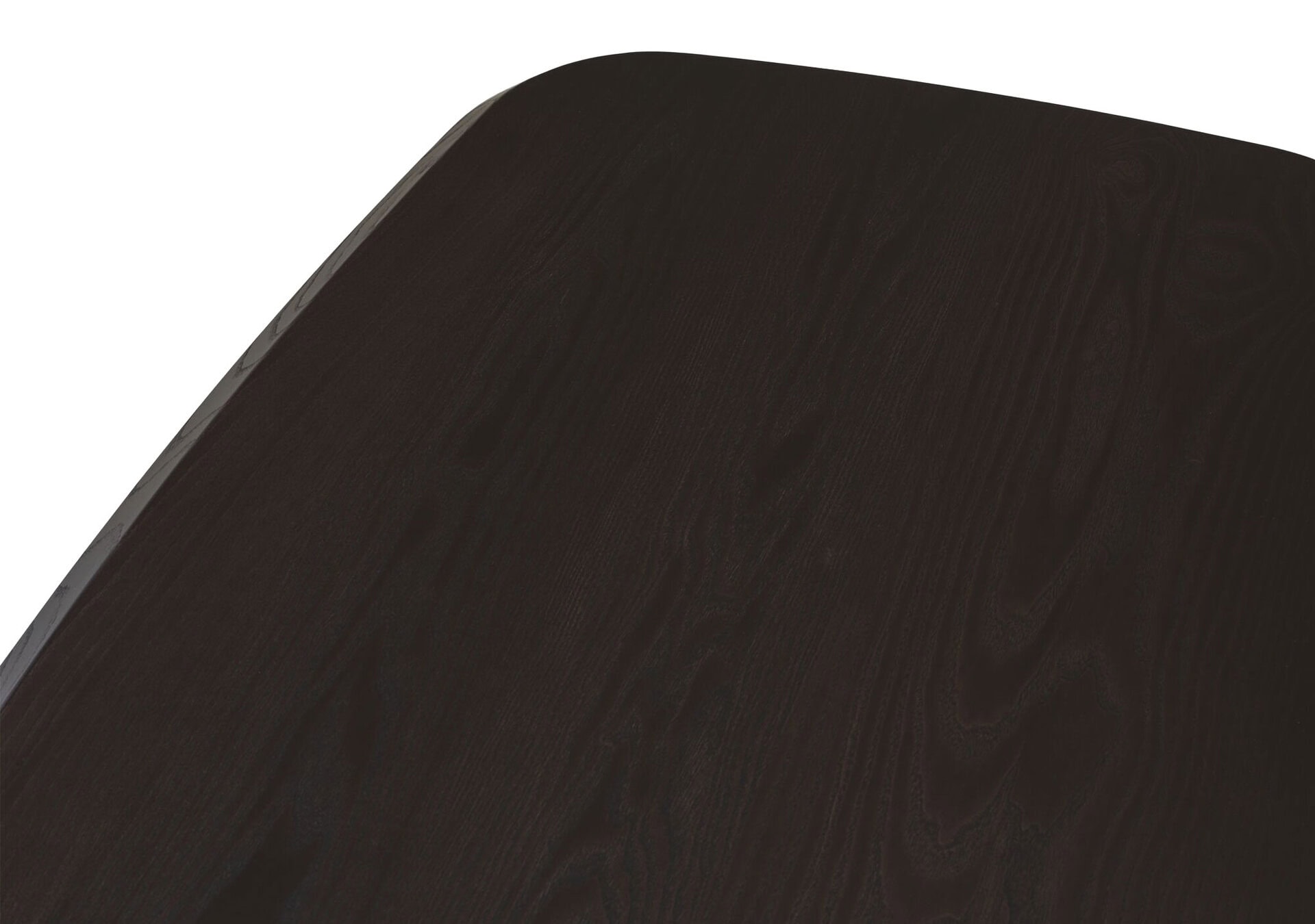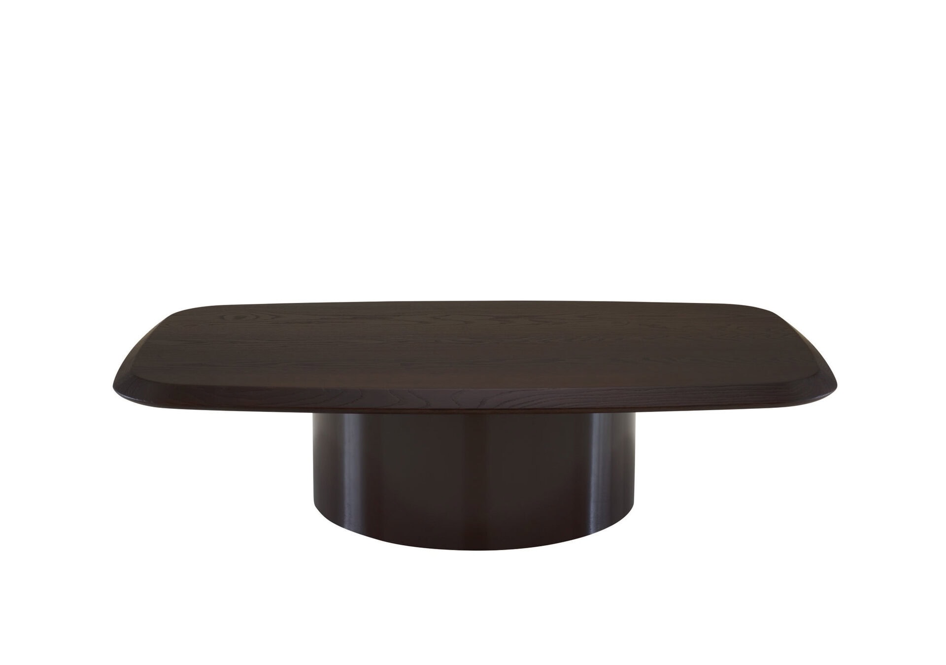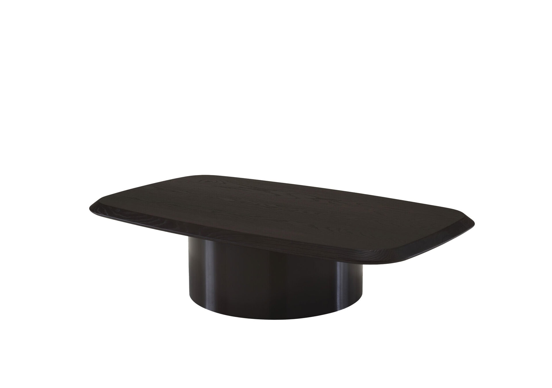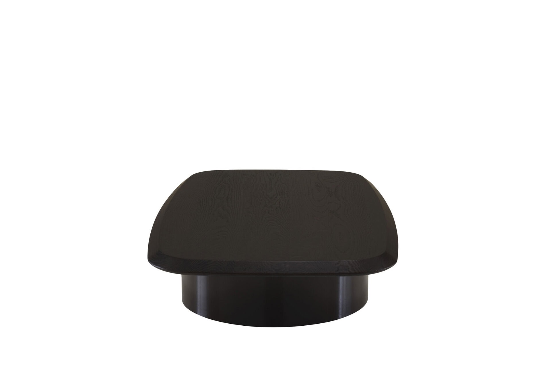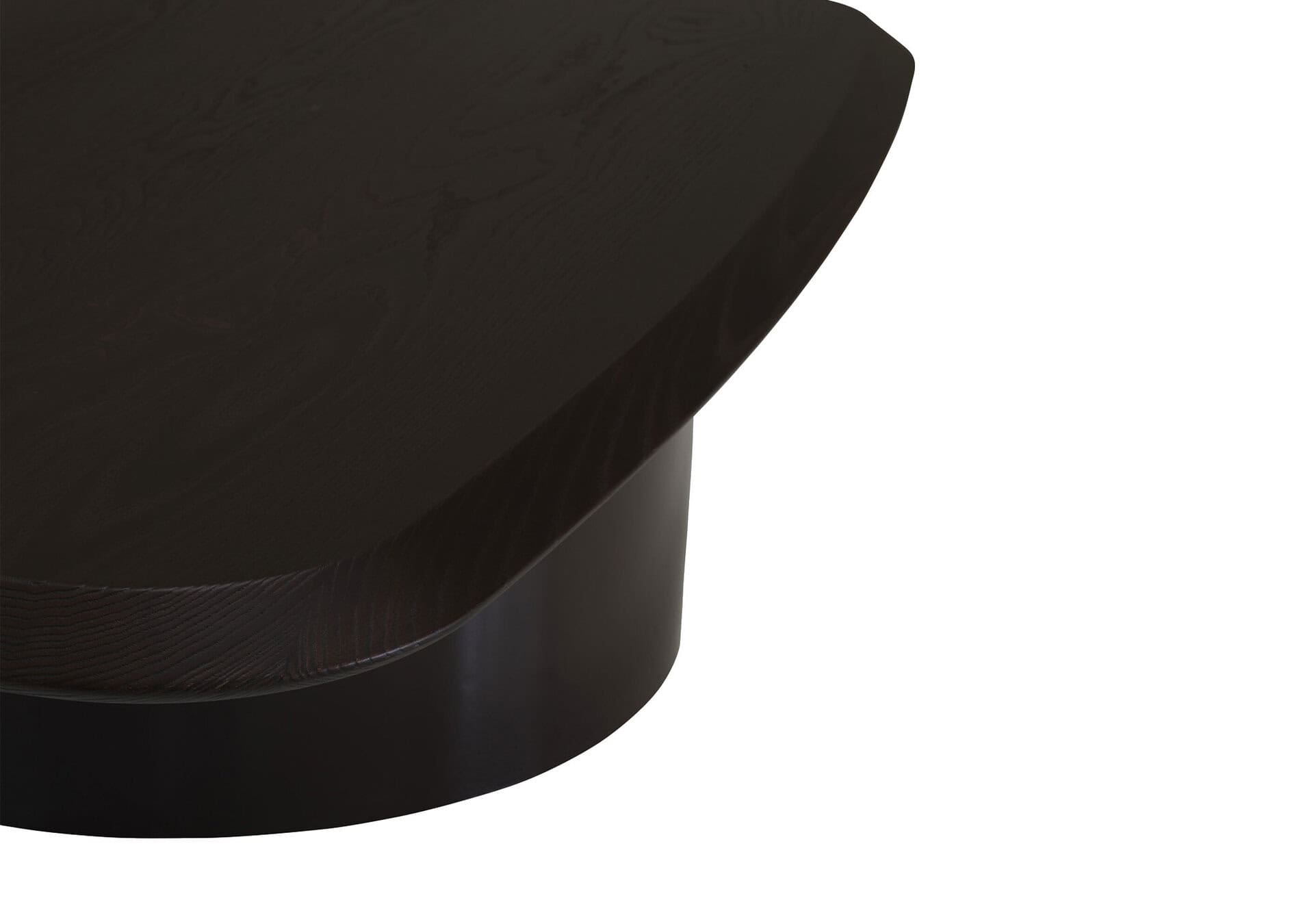 The sleek coffee table features a generously sized, uniquely shaped solid stained ash top. The tapered table-top edge gracefully flows down for an organic aesthetic. The rounded design exudes tranquillity, which suits modern and minimalist interiors.