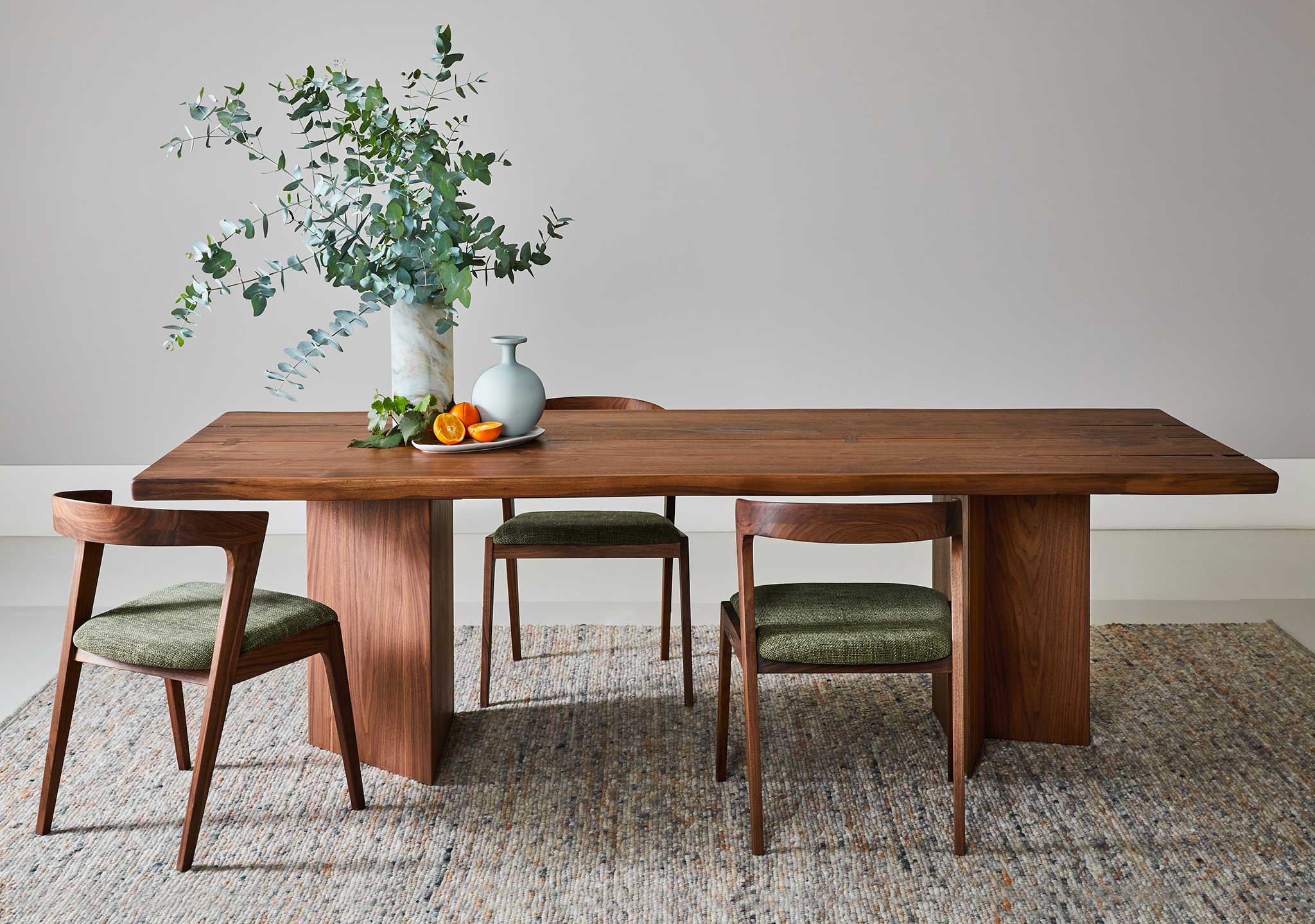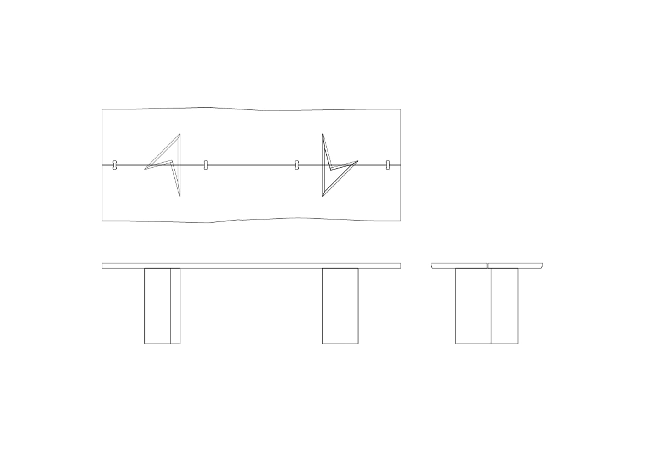The Vero Table is meticulously handcrafted. Made of two twin planks of solid wood, carved from the noble heart of the same trunk, they are perfectly matched by skilful hands. Each table is unique and unrepeatable.