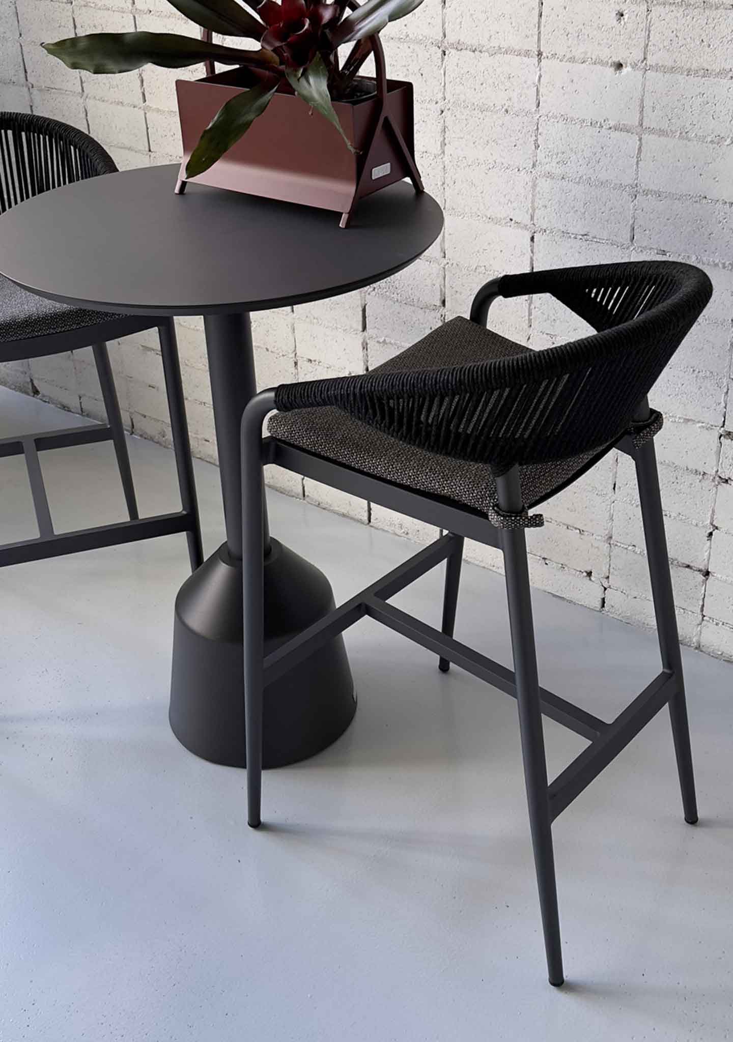 Combining artful geometry with functional stability, the KUN Design Balance Bar Table adds an architectural element to interiors, patios, or public spaces.