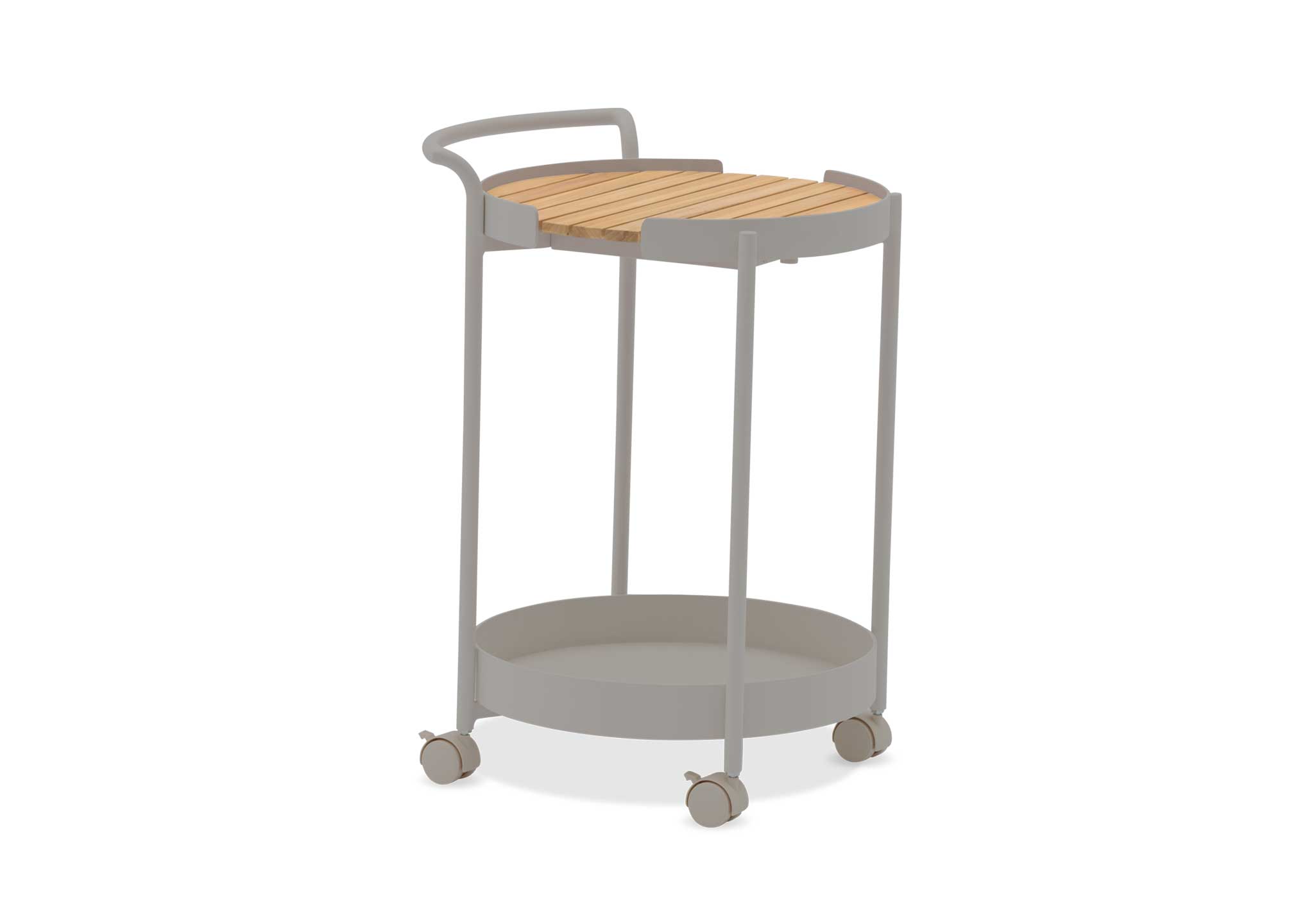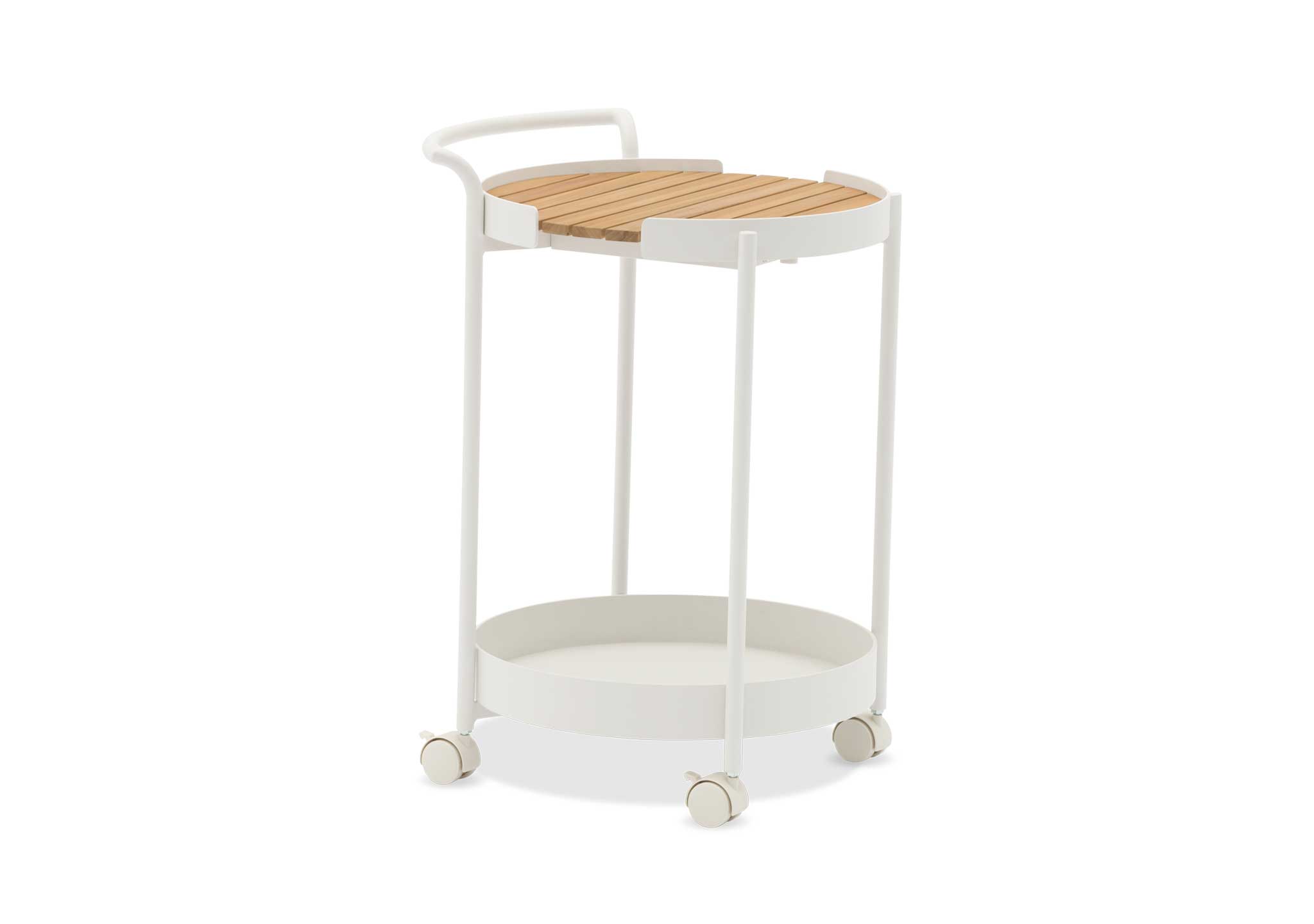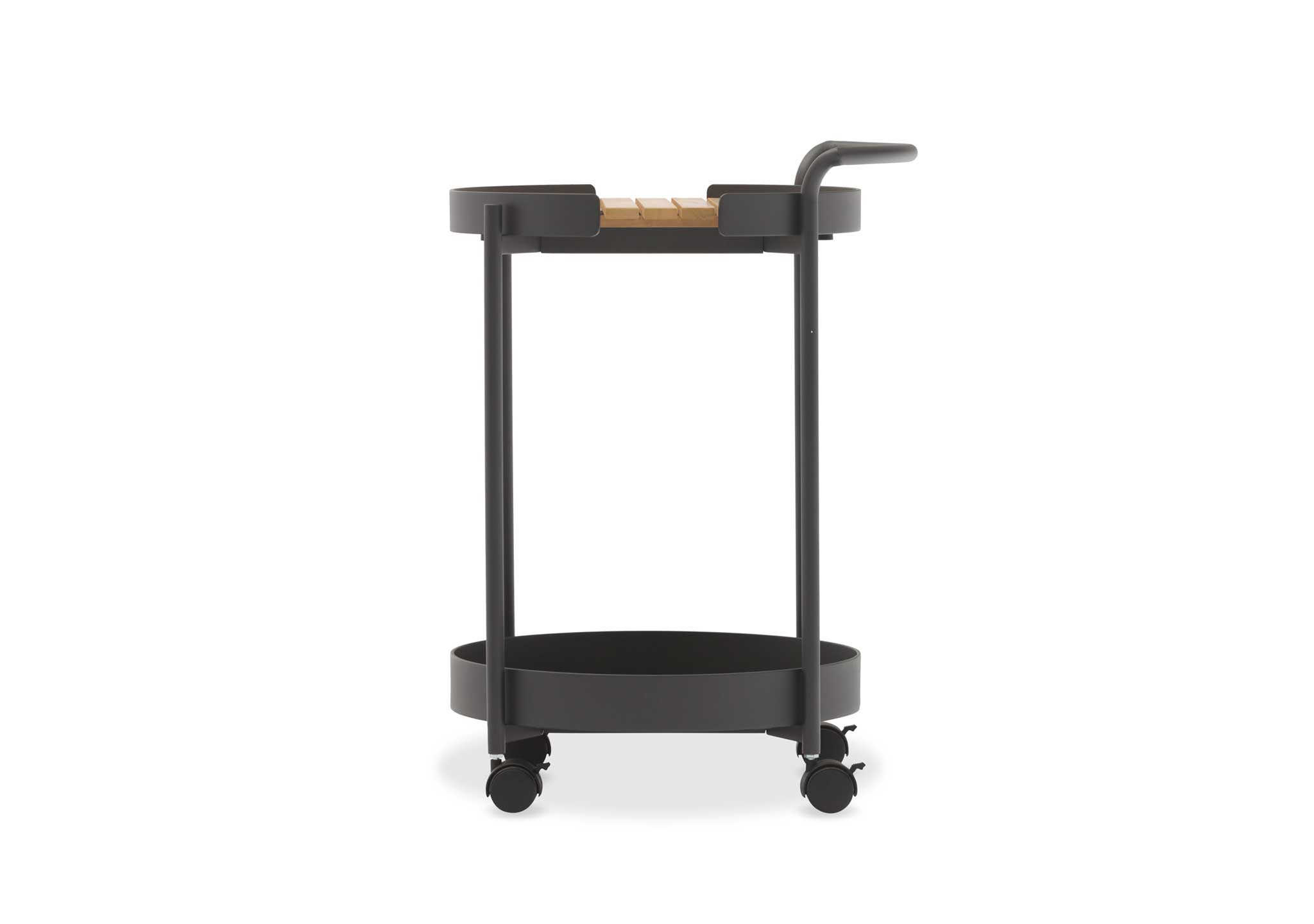 The compact DOMO Home Bloom Trolley with teak table top makes for a sleek drinks accessory whether its inside or outside. Designed with two handy serving surfaces, the top level is constructed of teak and doubles as a removable serving tray. While the lower level is made of powder coated steel.