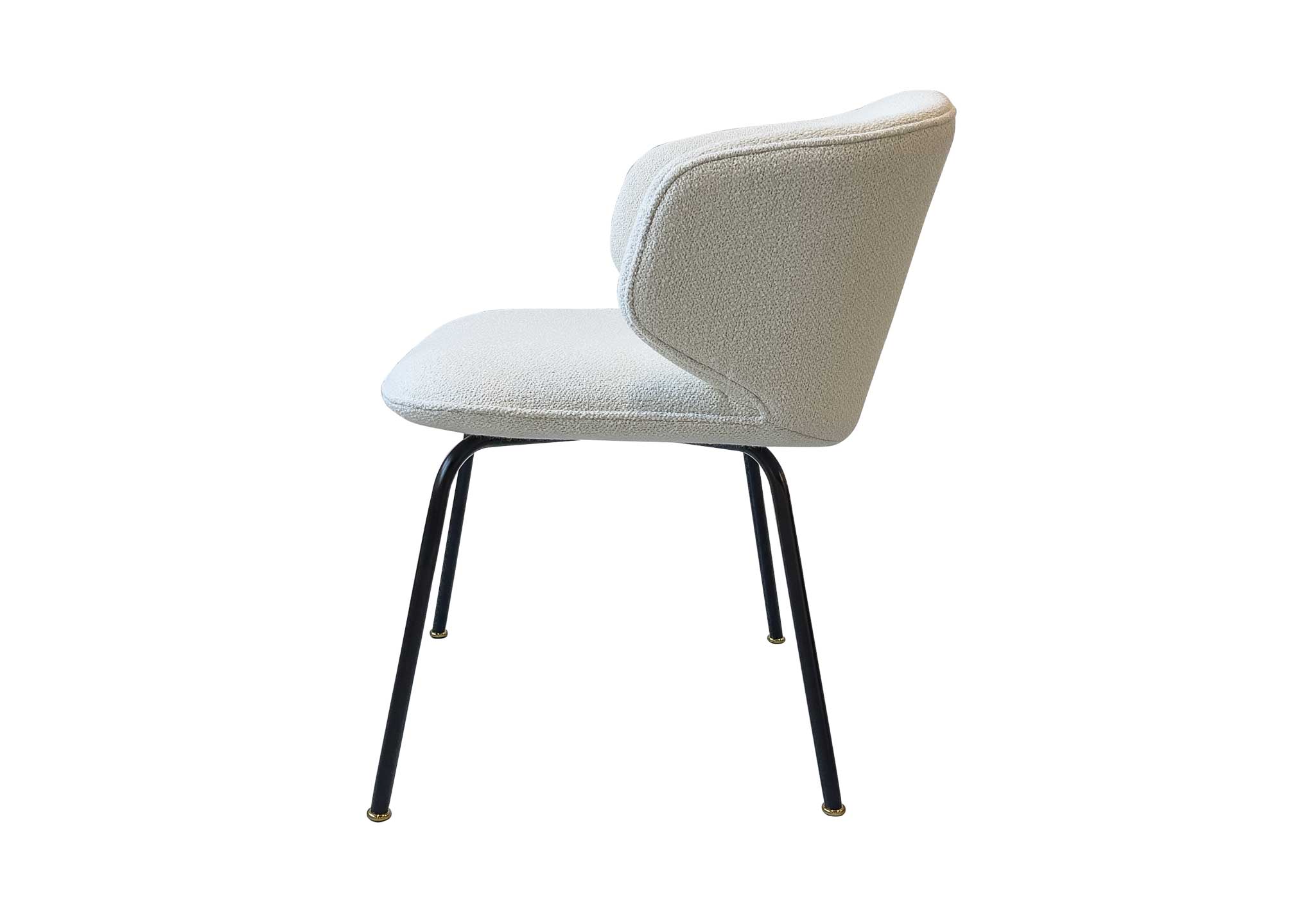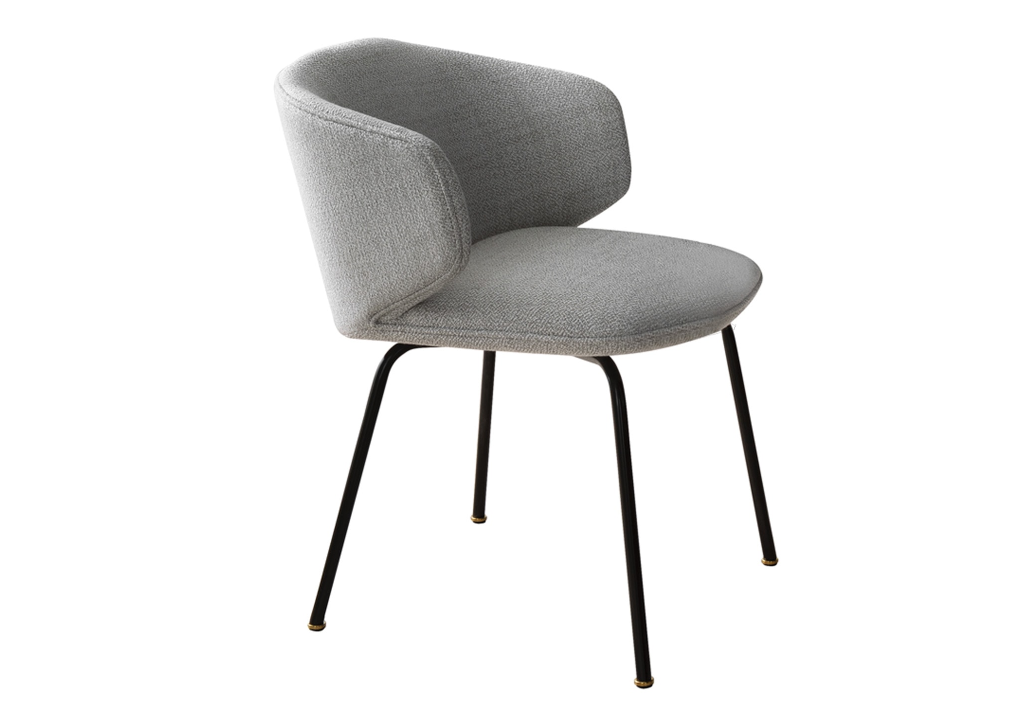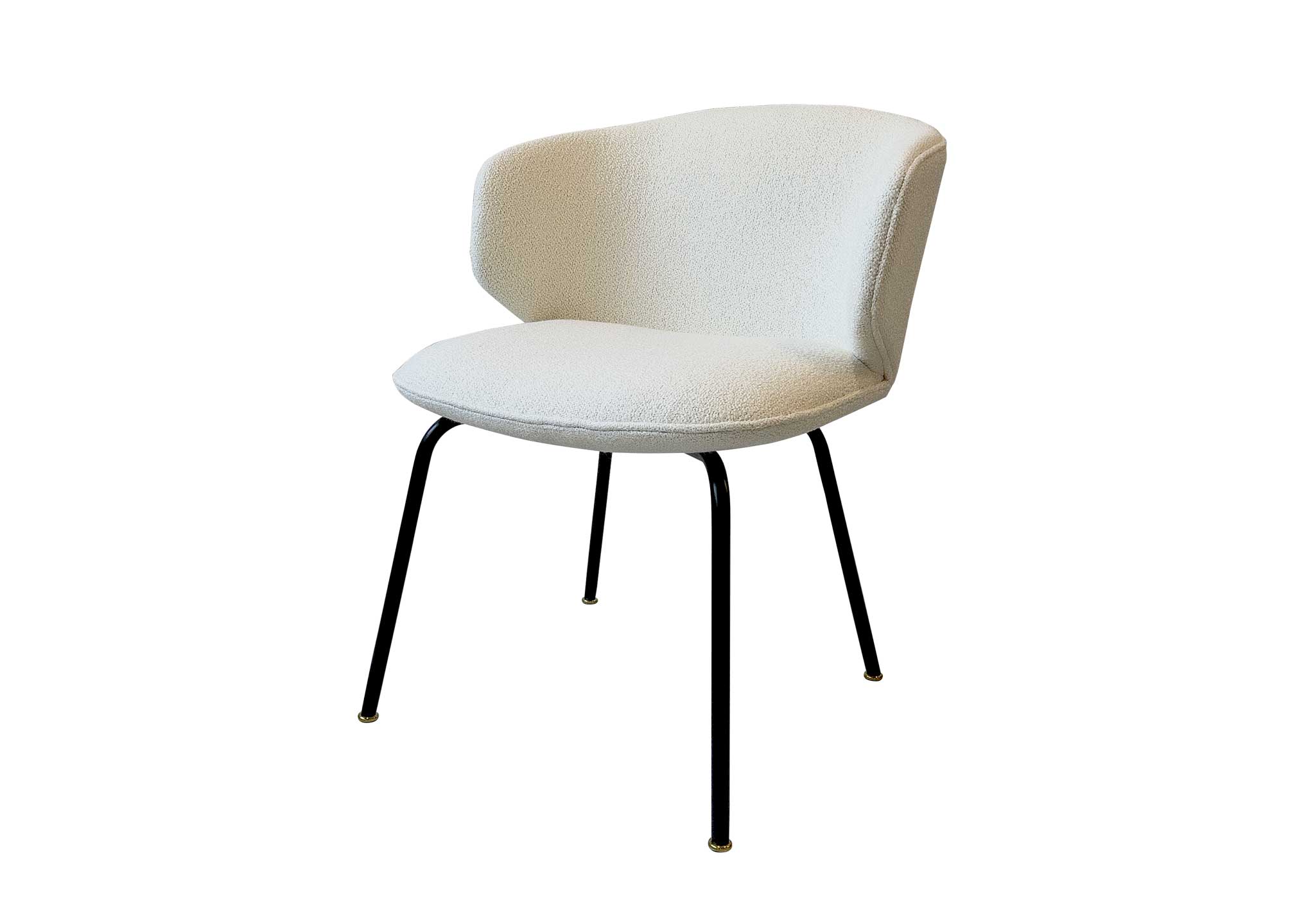 The metal legs of the Bola Side Chair are in silk black lacquered metal, the feet are in champagne titanium stainless steel.