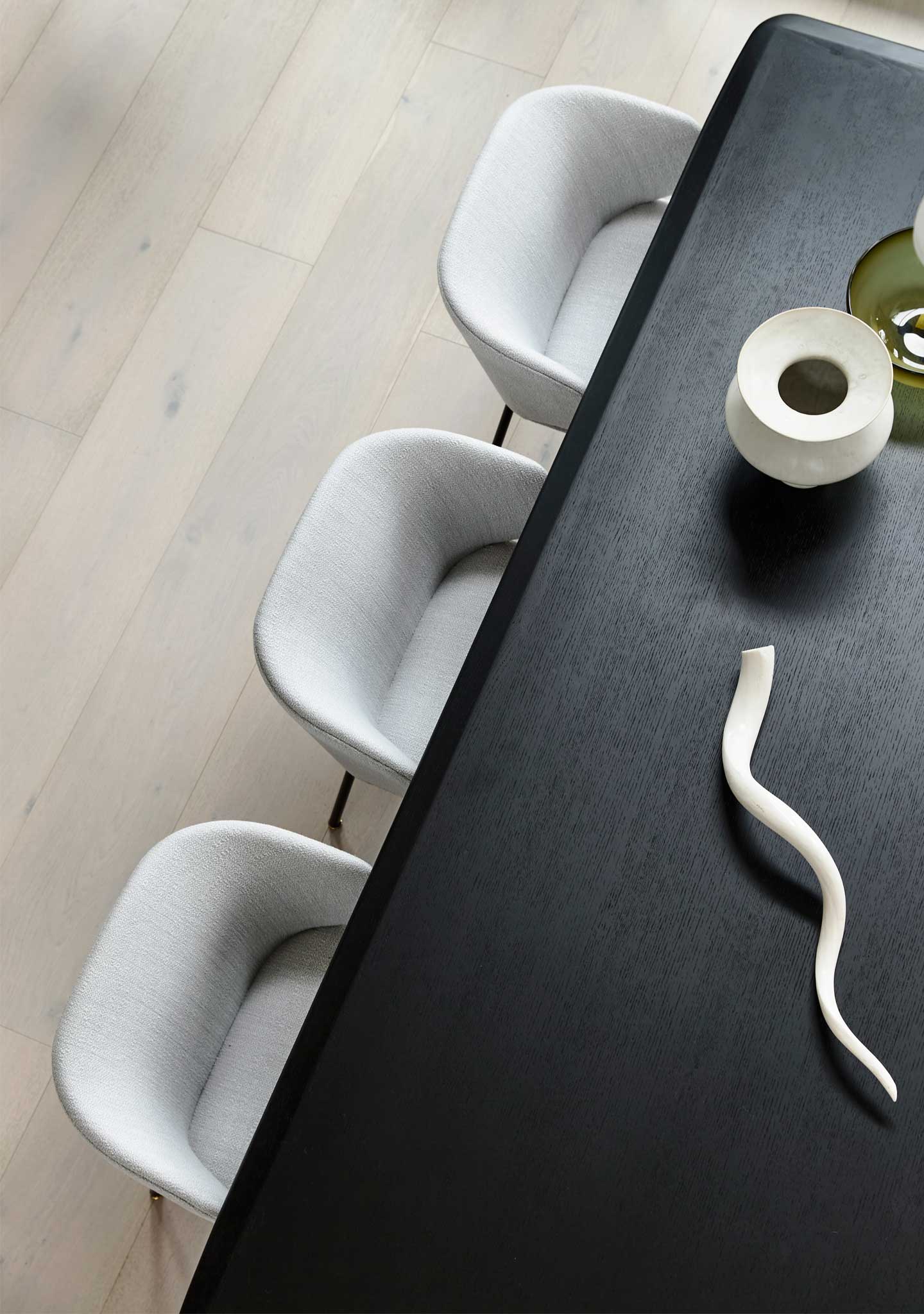 The back of the seat surrounds like an open wing, creating a comfortable space in the middle and a smiling curve. The Bola dining chair is a most elegant seat and appears exquisite when seen from any angle.