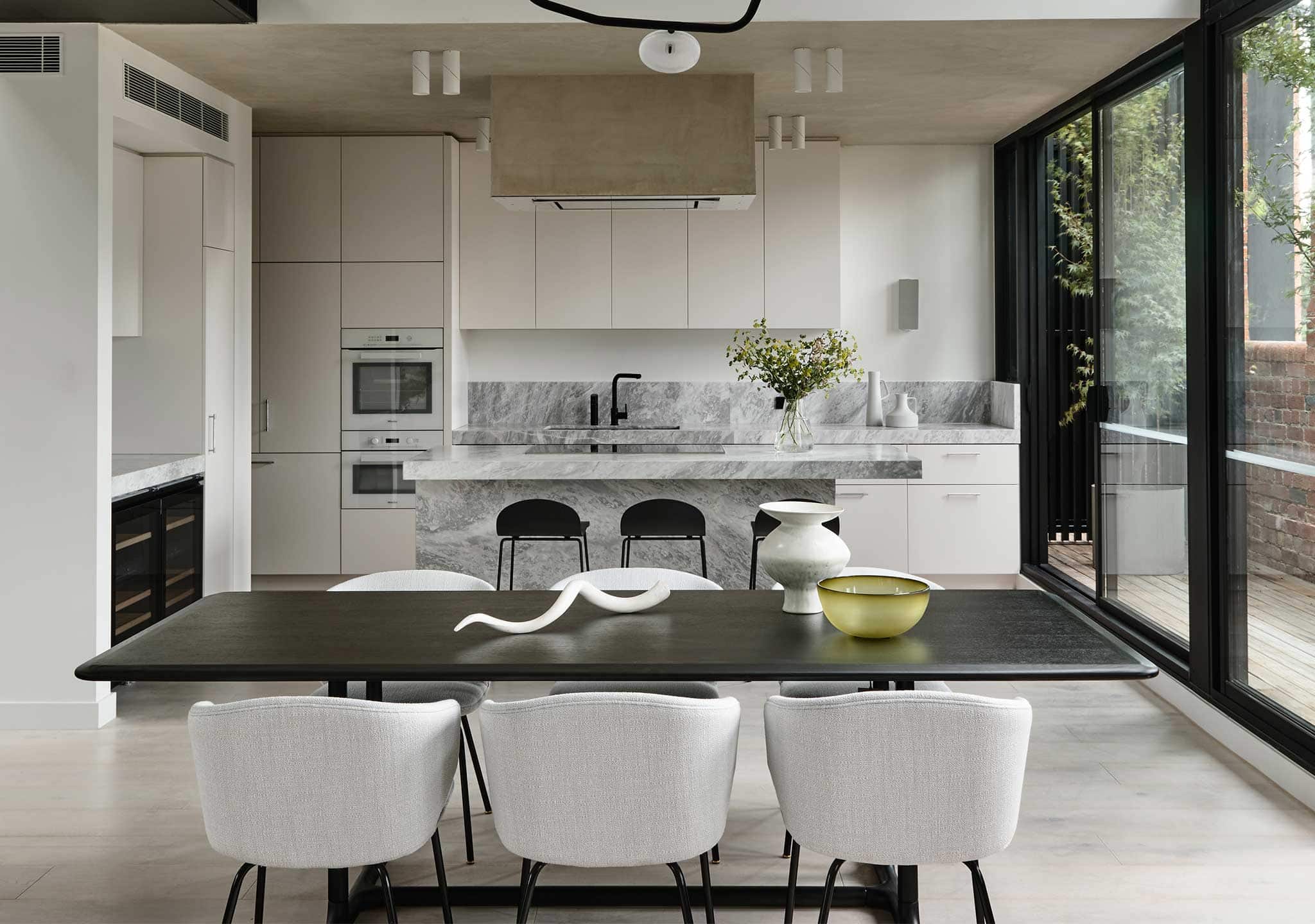The fresh-looking Bola Side Chair by Yonoh Studio for HC28 has sophisticated, straight metal legs and a “circle-in-square, square-in-circle” design.