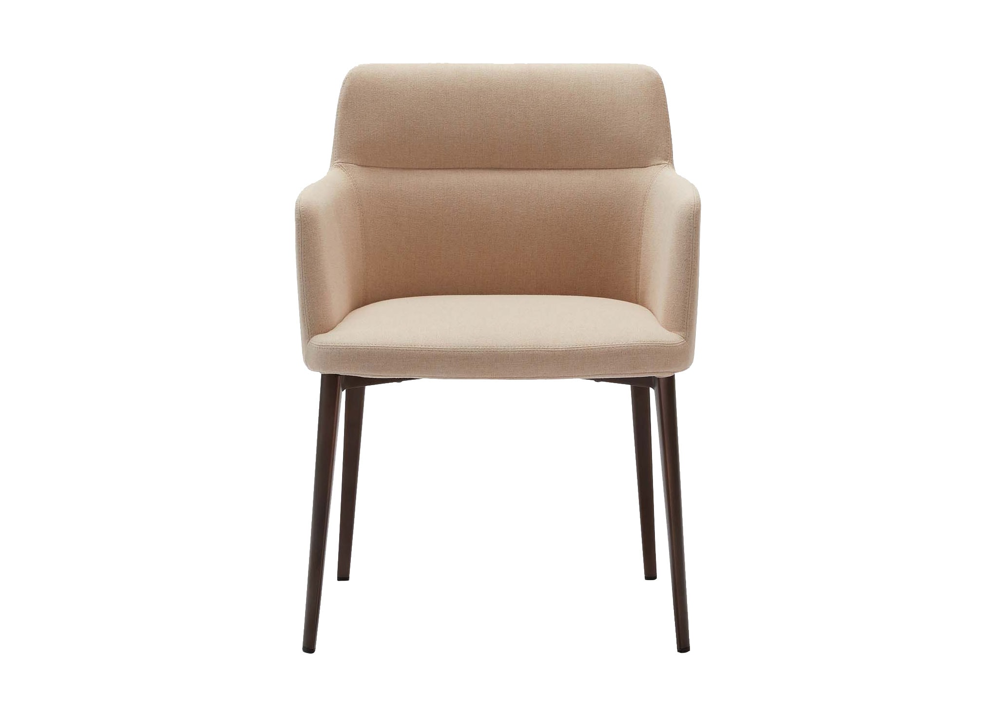 The Chicago Dining Carver Chair seat itself is carefully upholstered with an elegant back seam detail. It is crafted with injection foam for superior comfort. The seat base is constructed of powder coated steel.