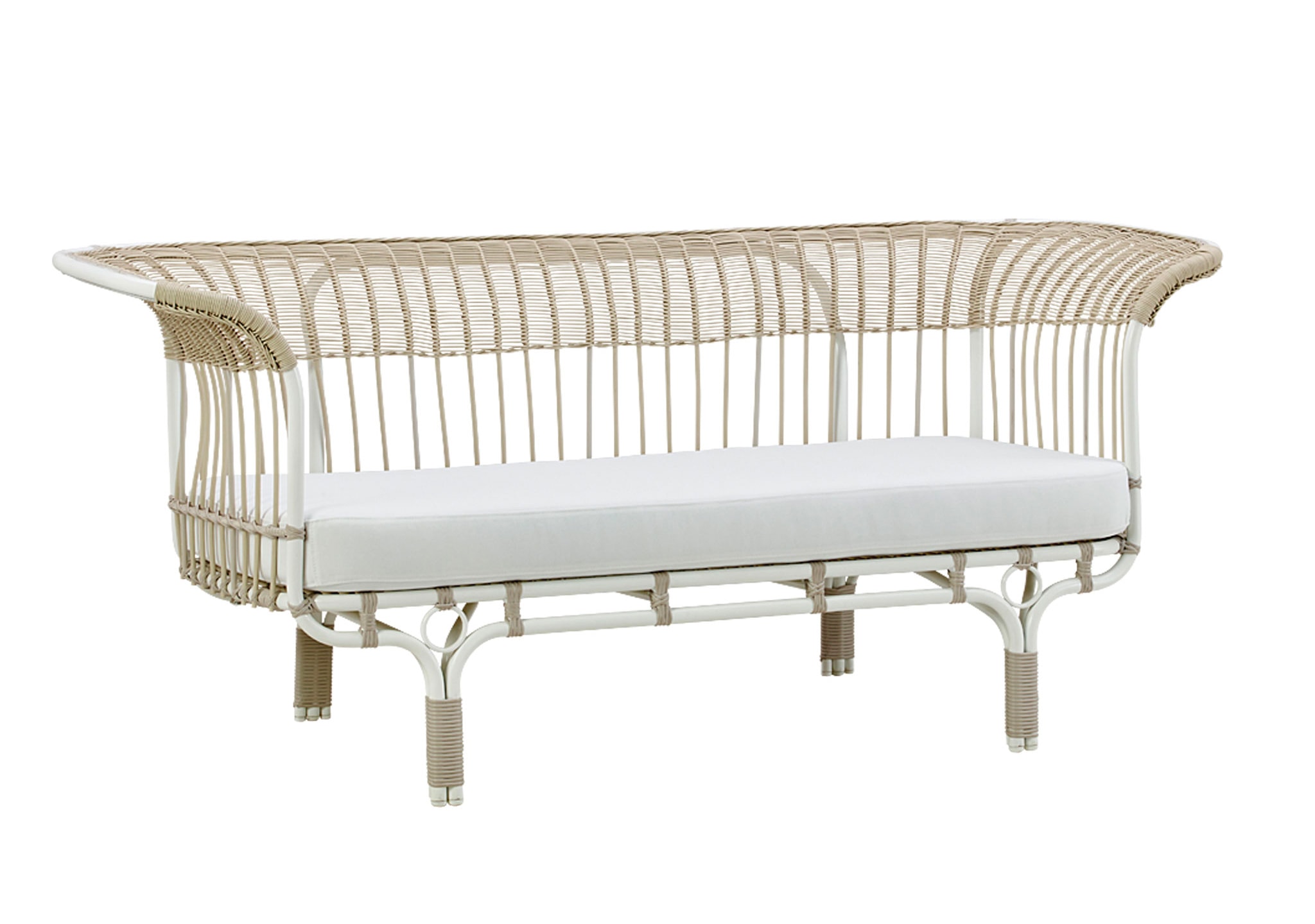 The Exterior Belladonna Sofa by Franca Helg + Franco Albini for Sika Design is an exclusive outdoor variation on the iconic indoor wicker sofa of the same name.