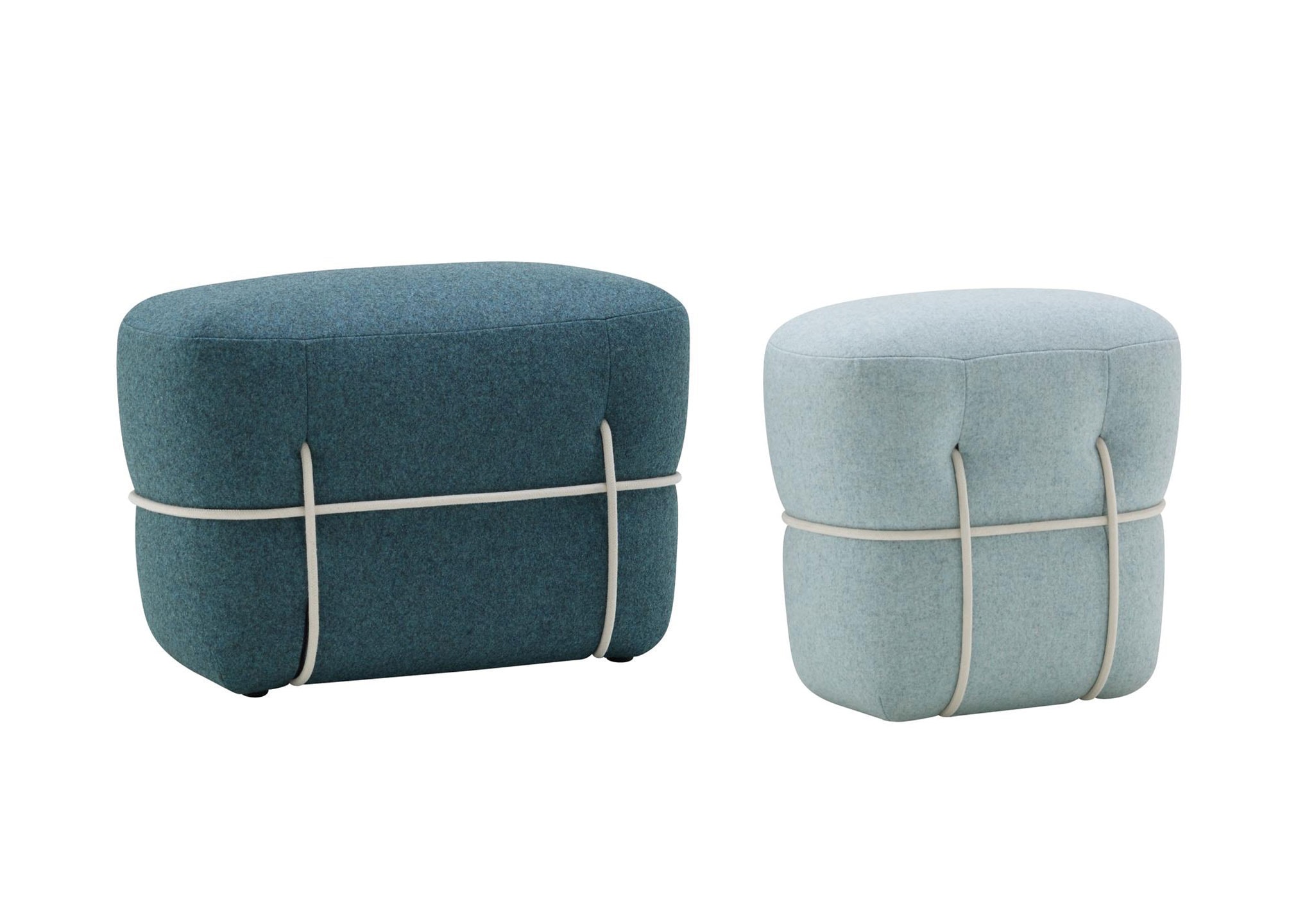 The firm cord bindings of the Lace Footstool poetically restrain its billowing form. Its strong and unique personality is expressed through the ropes intertwining around the base.  With Lace, as with all of his previous projects, Benjamin Graindorge brings us an ordinary yet highly original object with a truly astonishing personality.