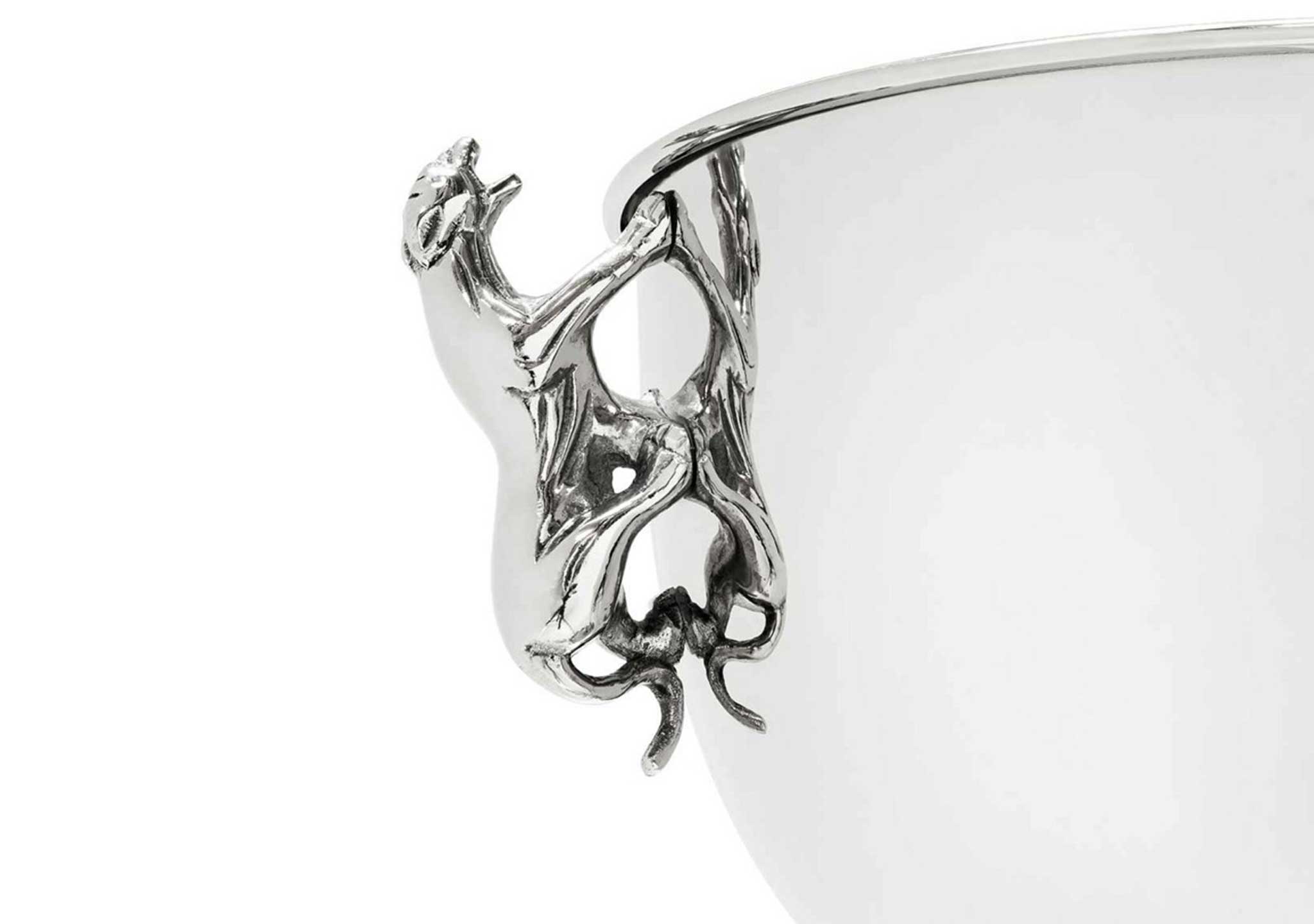 The super-sized Leo Wine Cooler by Abhika is an elegant metal wine cooler decorated with ornate leopard handles.