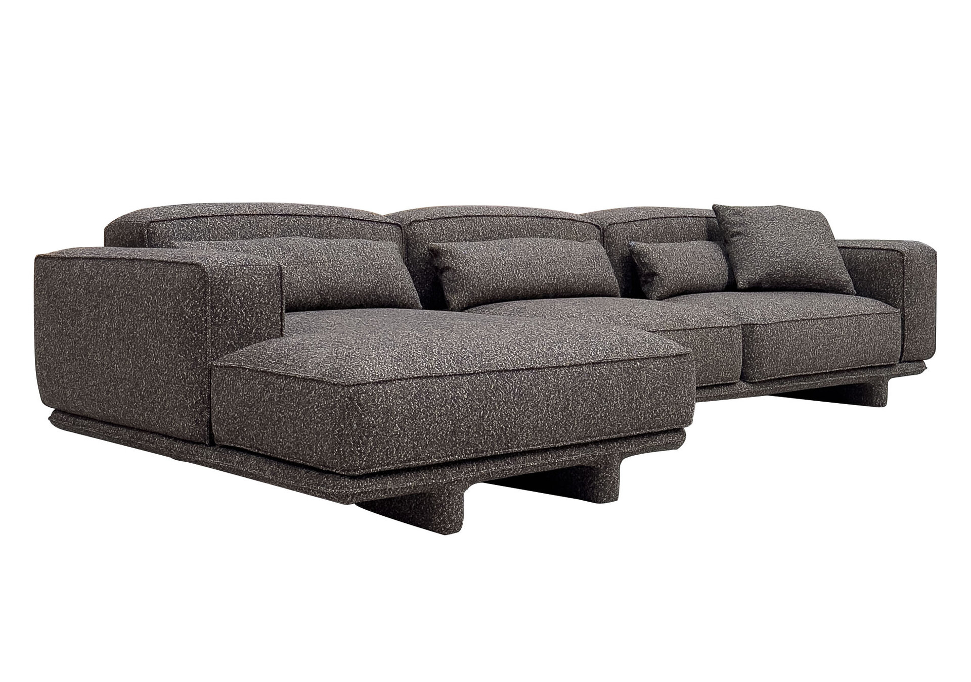 For Sebastian Herkner, Noka Sofa represents both an anchor and a bridge, offering grounded comfort while fostering connection. Like a building on stilts, the sofa creates a stable yet floating presence inviting relaxation.