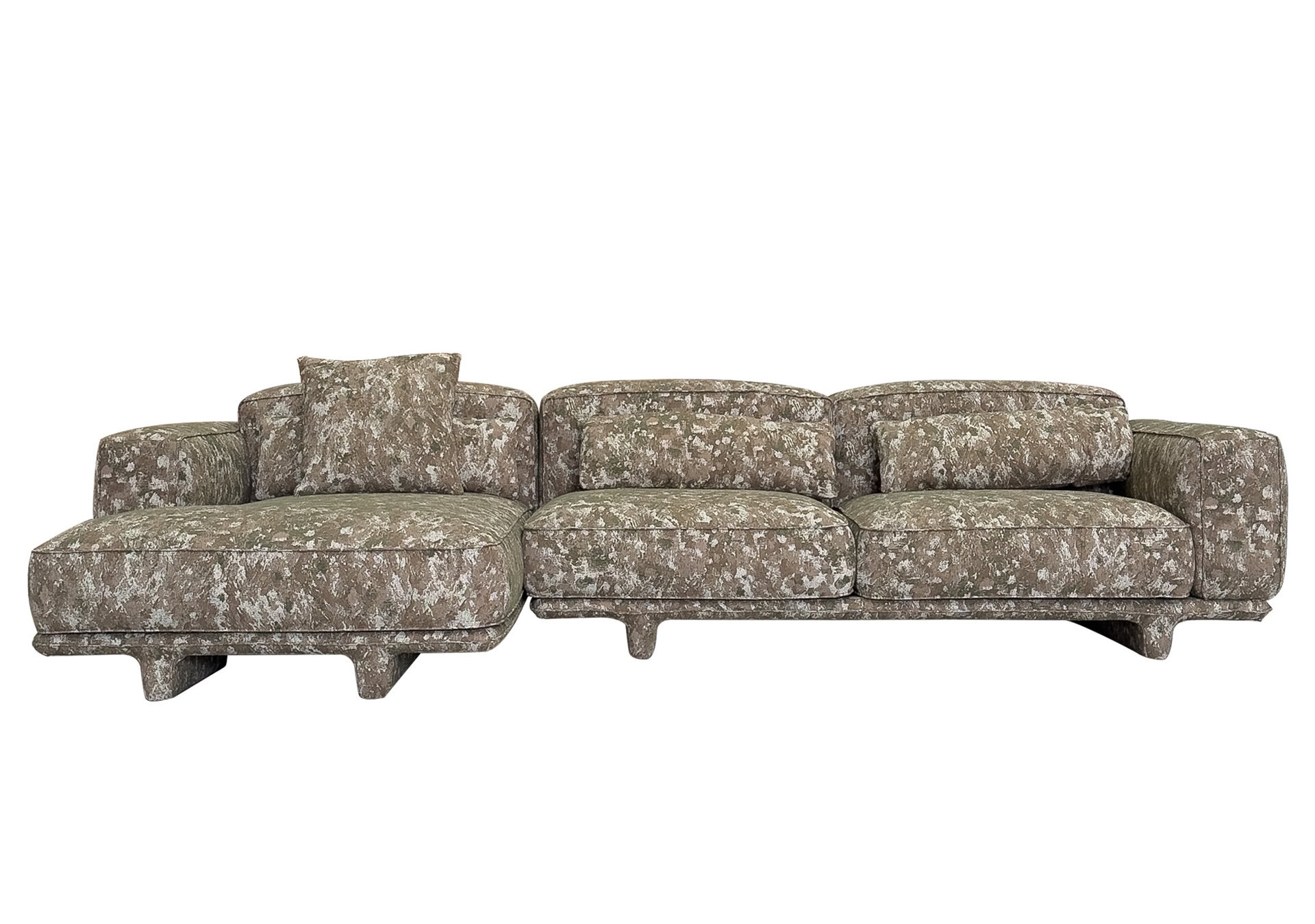 The Noka Sofa may be ordered in a variety of configurations. Noka’s flexibility allows it to transform from a standalone statement piece to a larger social arrangement. Its modularity makes it perfect for intimate seating or group settings.