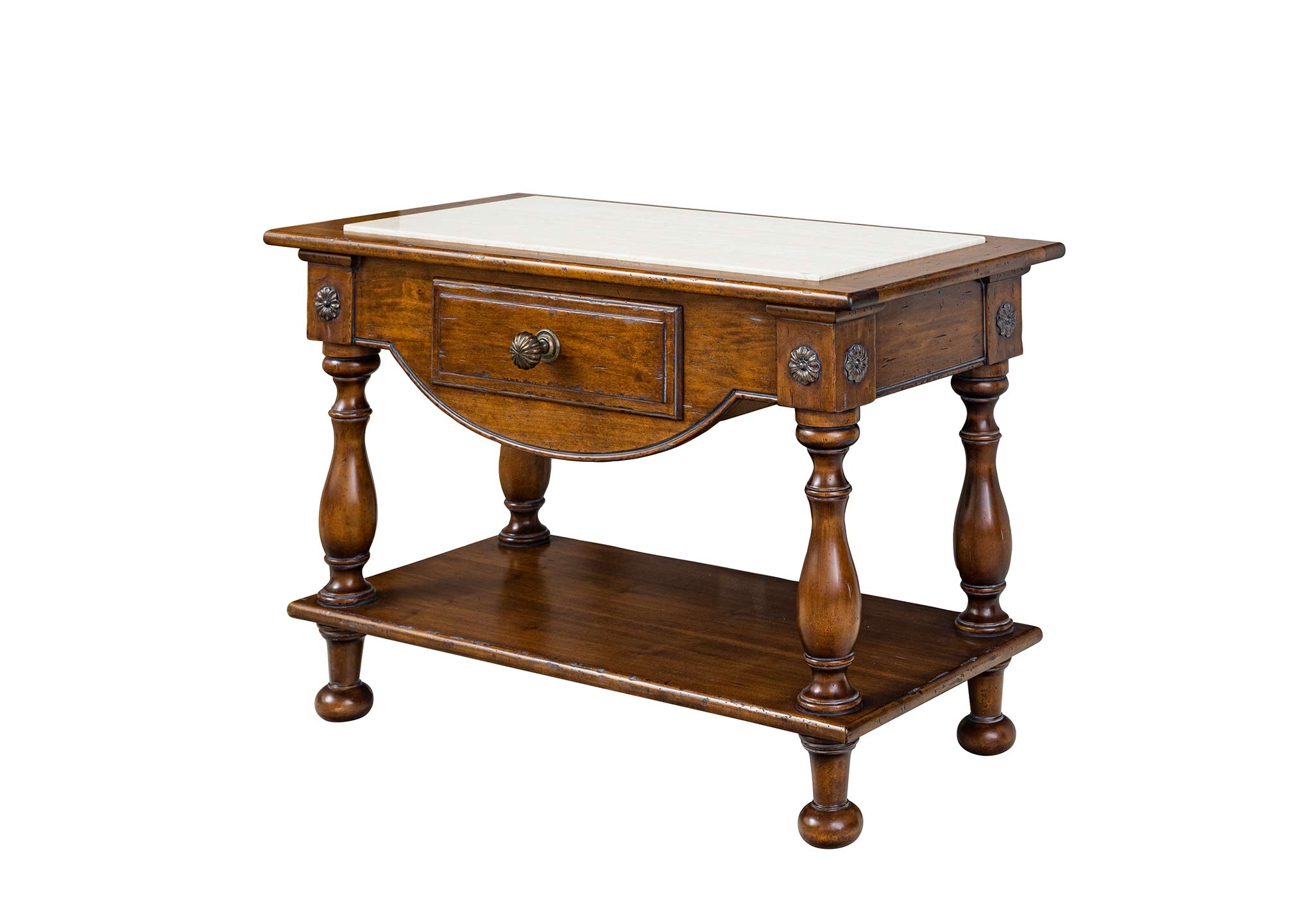 The hand-crafted Pastry Console 1 Drawer by Giovanni Visentin is an intricate timber and marble side table. With carved detailing of solid wood and a premium travertine marble top inlayed into the console, the result is show-stopping.