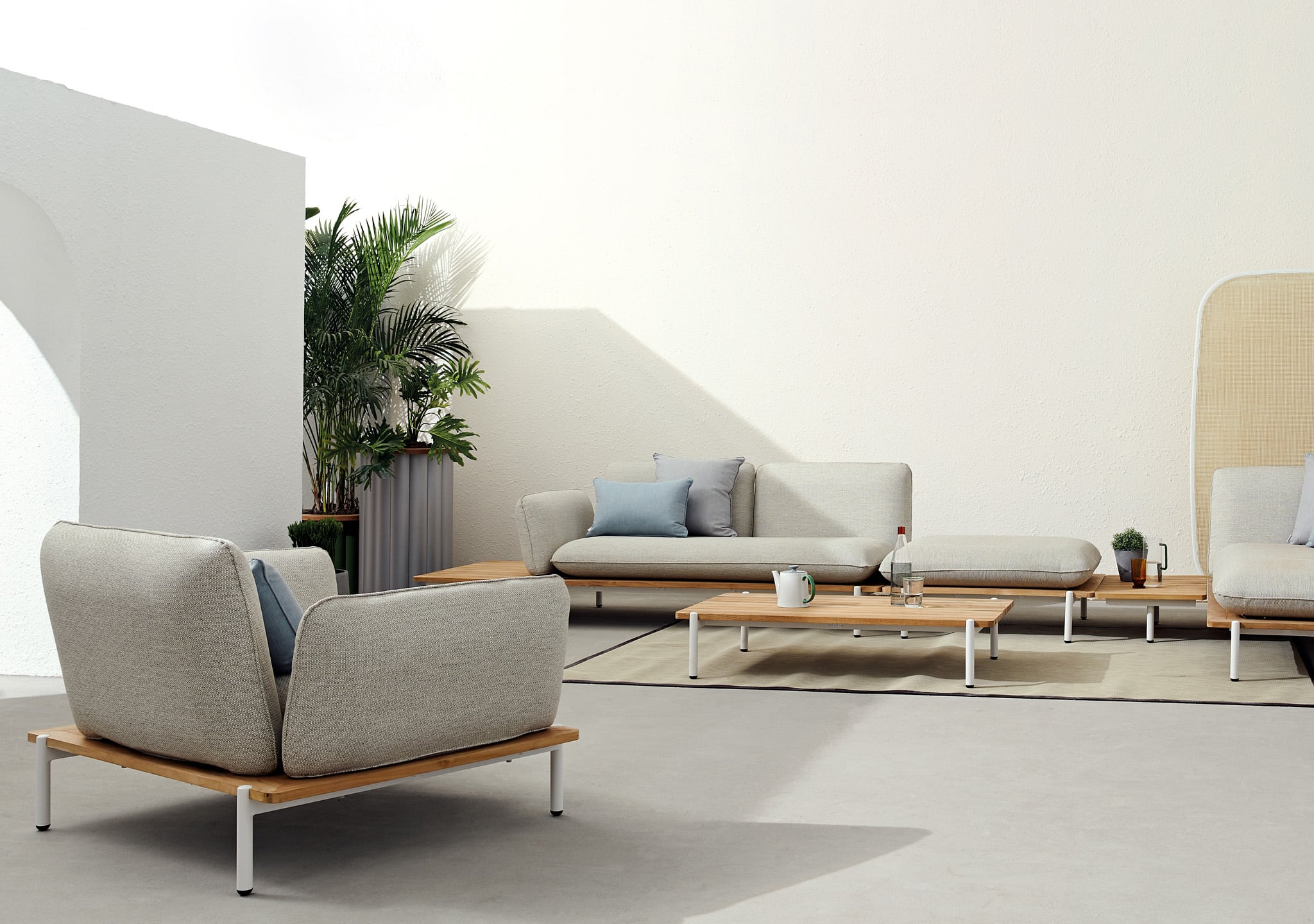 Seated on a teak base frame to create a textural contrast, which is FSC certified in consideration of the environment. With versatile modular components, the KUN Design Pillow collection is suitable for all interior and exterior settings.