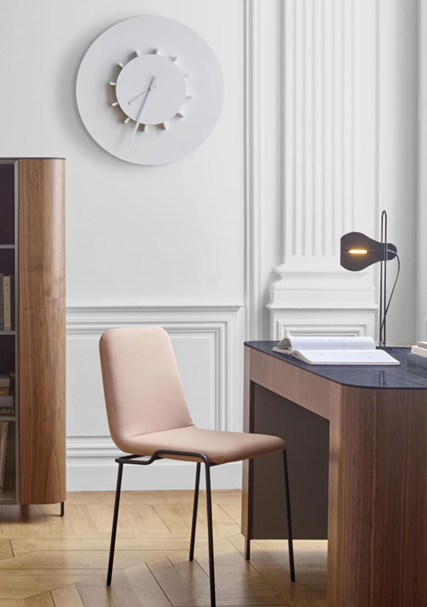 For Eric Jourdan’s new family of storage, everything revolves around a language of forms. It is the design which guided the project, the pencil drew, adjusted, proportioned the constituent elements of the piece, balancing the tops, for example, with the staggered legs. In its light, asymmetrical, hollowed appearance one recognises the rounded forms so beloved of Eric Jourdan.