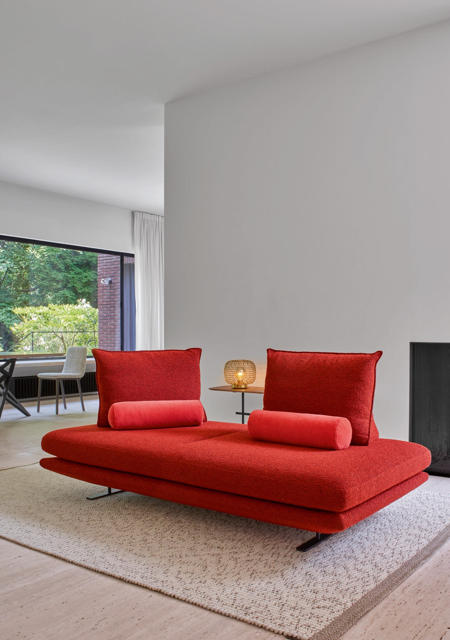 The Prado by Christian Werner for Ligne Roset is a minimalist modular sofa that brings a new dimension to comfort with its vast seat and mobile back cushions which may be scattered at will.