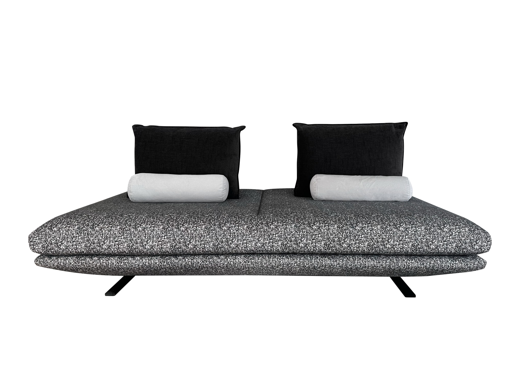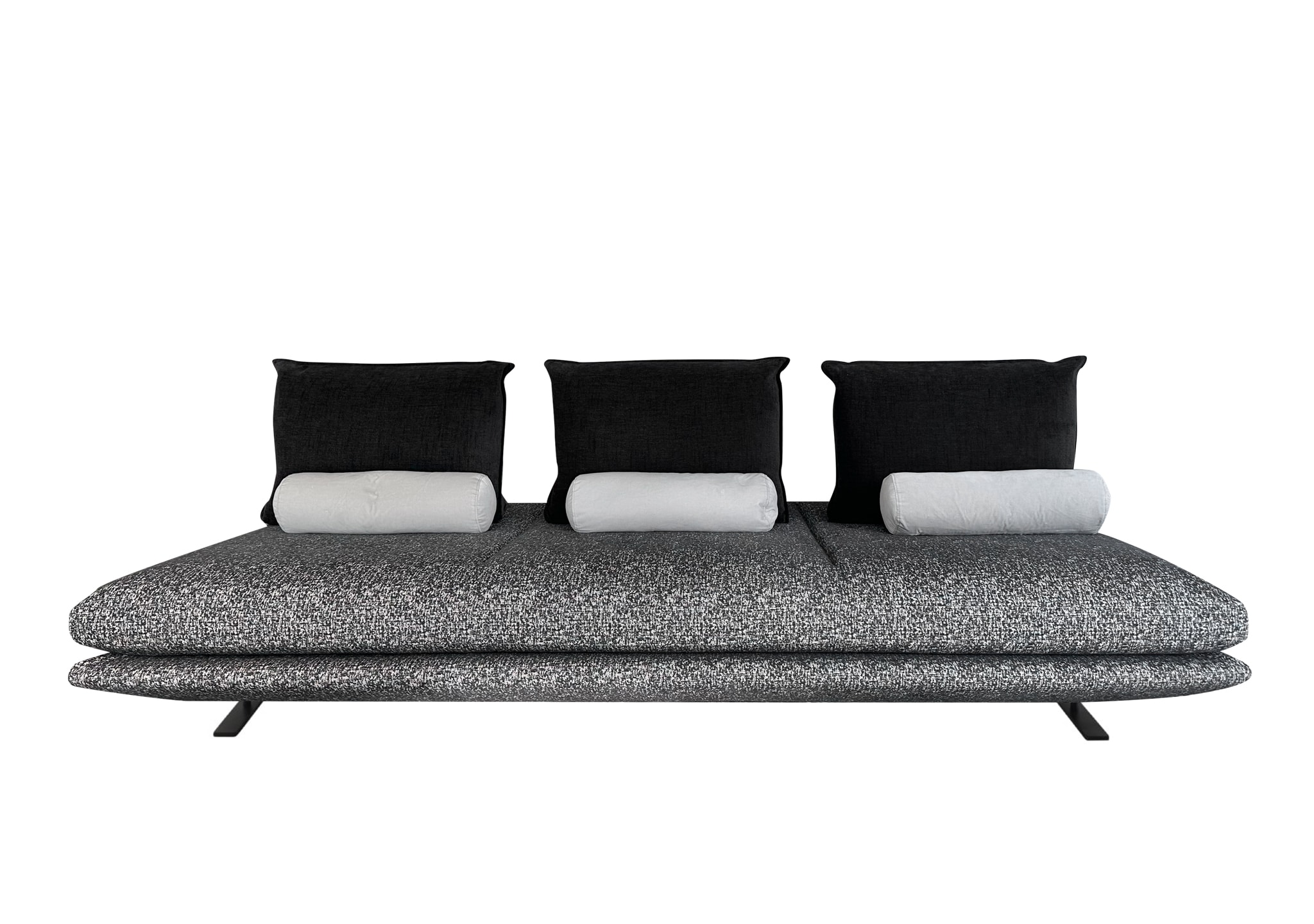 The Prado Sette Base itself is a modular element of the sofa system. An interesting feature of the Prado Settee Base is the possibility to transform it as an occasional bed simply by turning over the large seat cushion, the reverse of which is covered with mattress ticking.