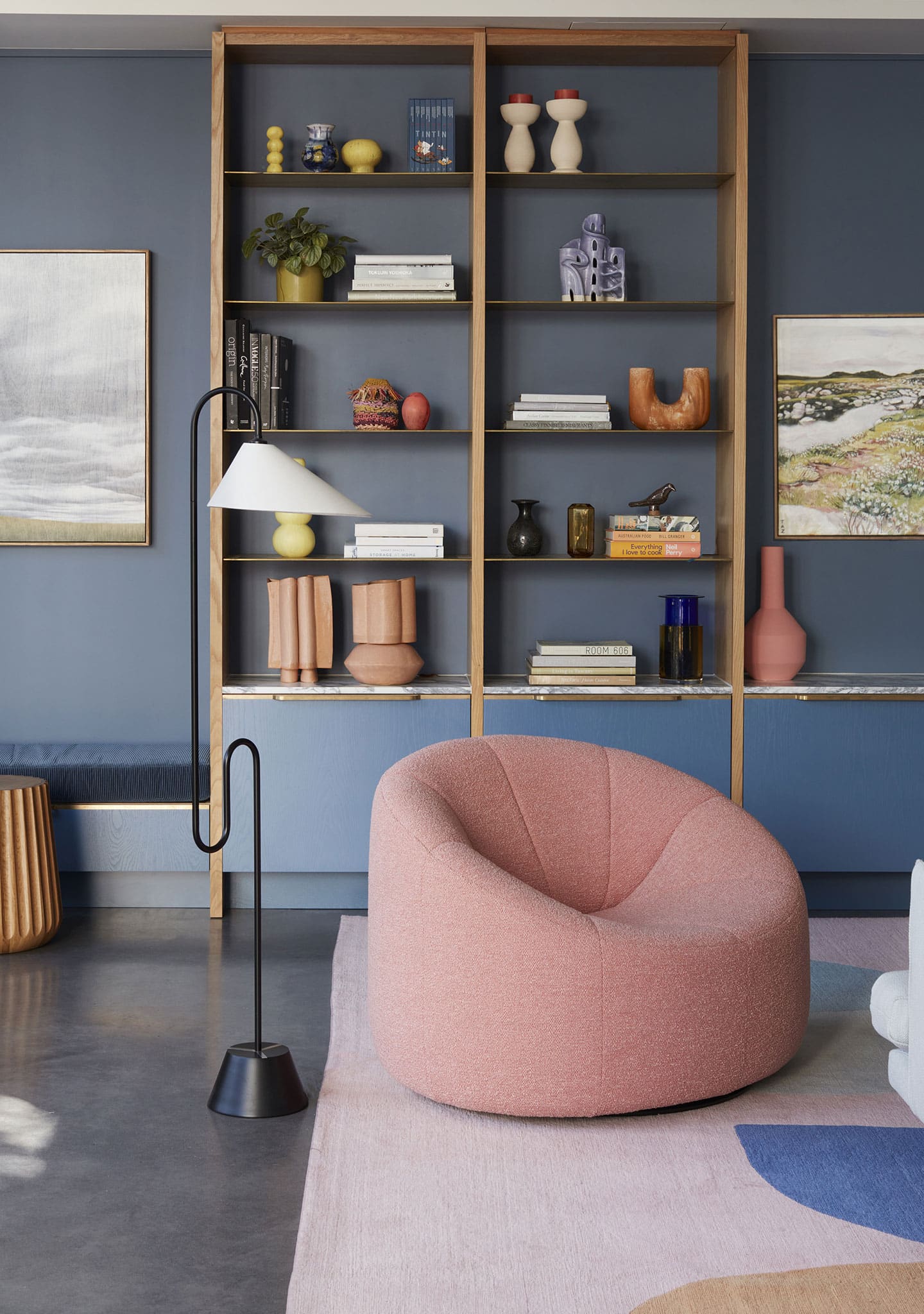 The Pumpkin Swivelling Armchair is characteristic of Pierre Paulin’s revolutionary design style. As its name suggests, this Ligne Roset armchair is evocative of a giant pumpkin, welcoming the user with its protectively voluptuous – and voluptuously protective – shell.