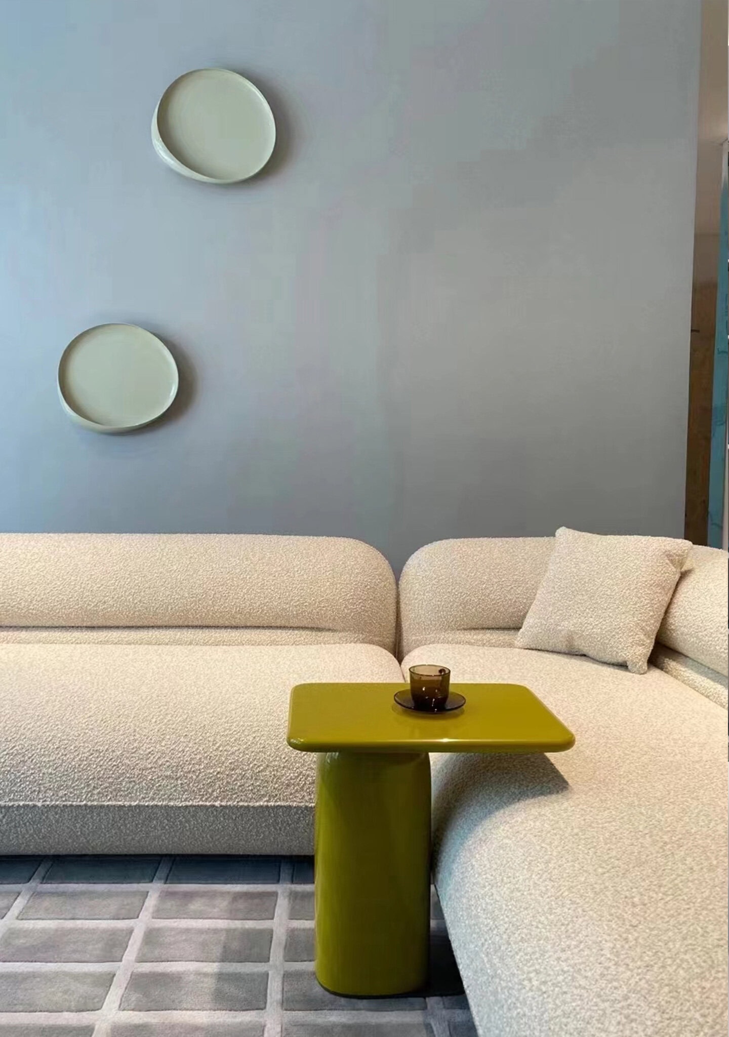 Crafted by HC28 Cosmo, the side table is made of wood and FRP integrated moulding and coated with coloured lacquer.