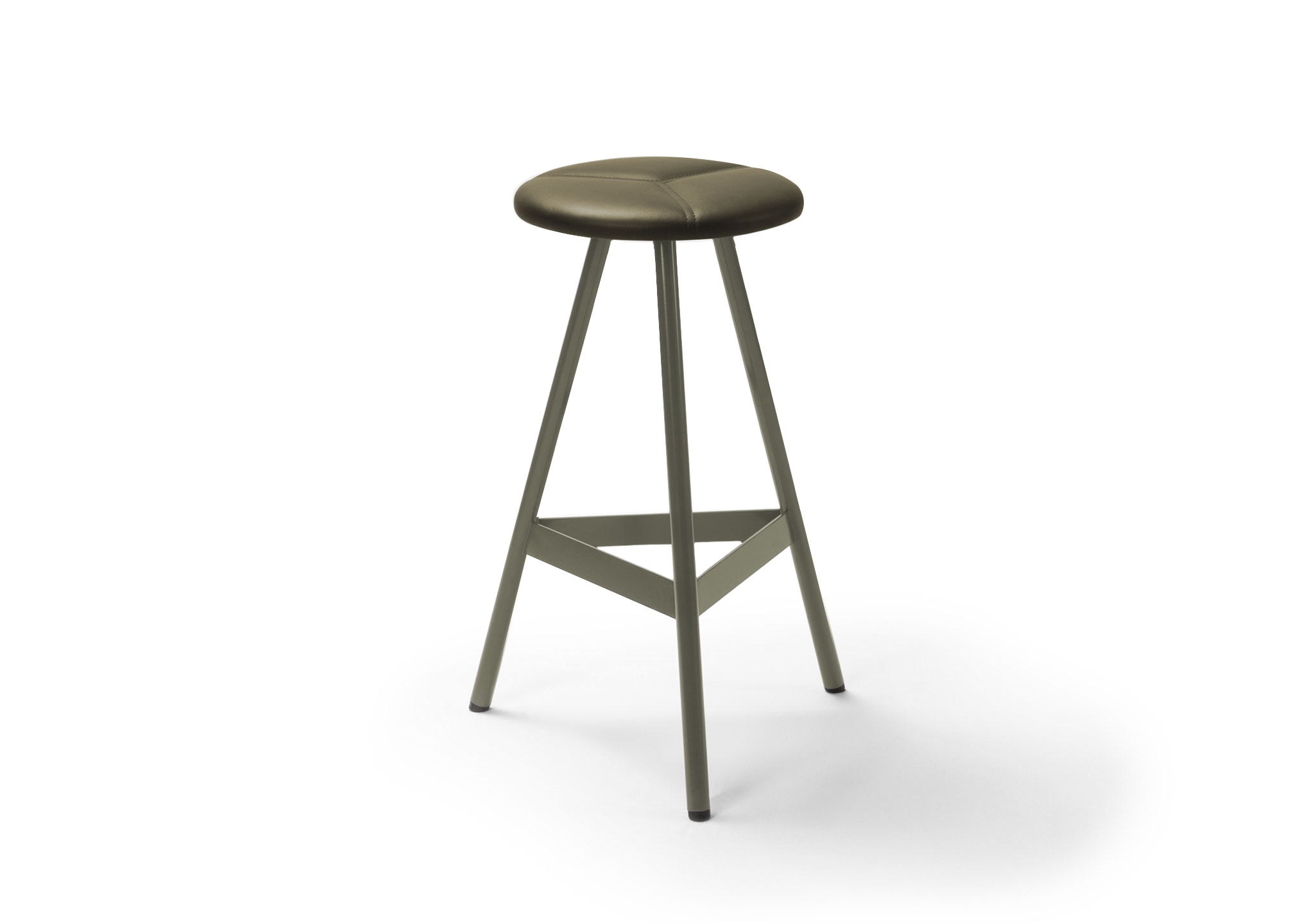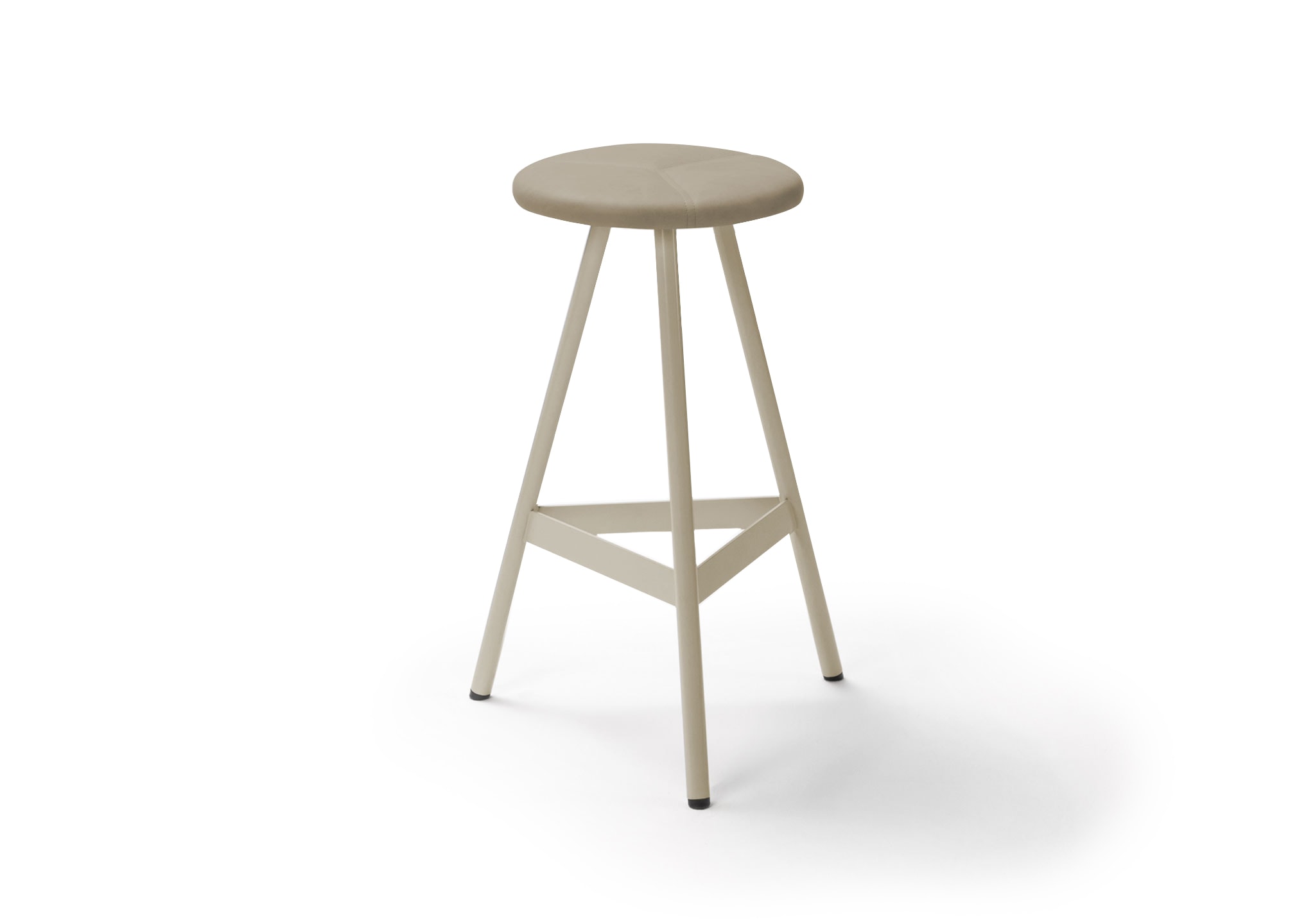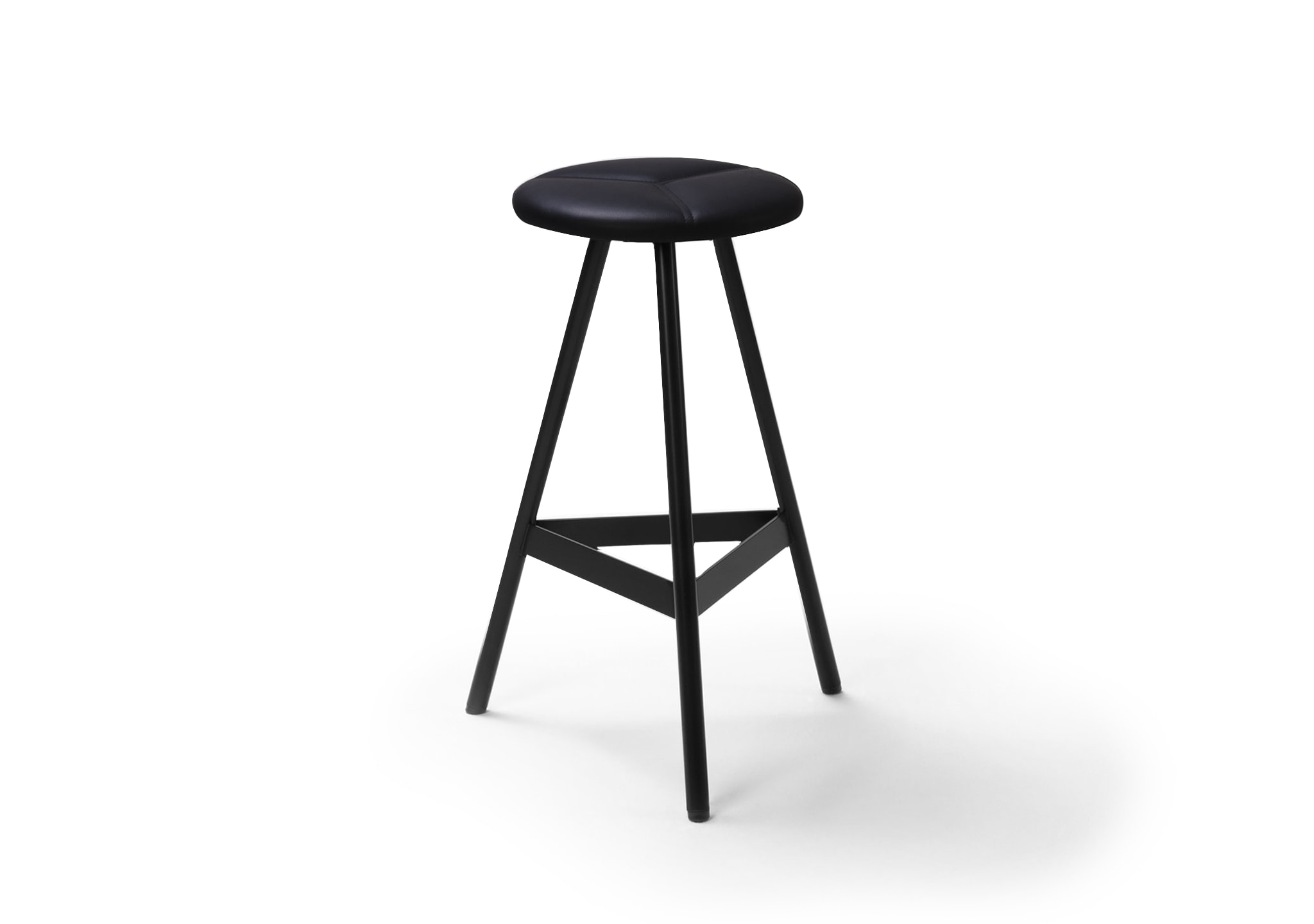 Designed and made in Melbourne by Studio Biasol lead by Jean-Pierre Biasol, the counter stools feature a sturdy, powder-coated, three-legged steel frame with an upholstered seat. Available in a height of 650cm, perfect for a kitchen island counter.